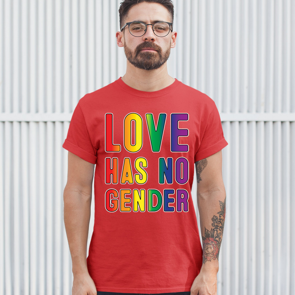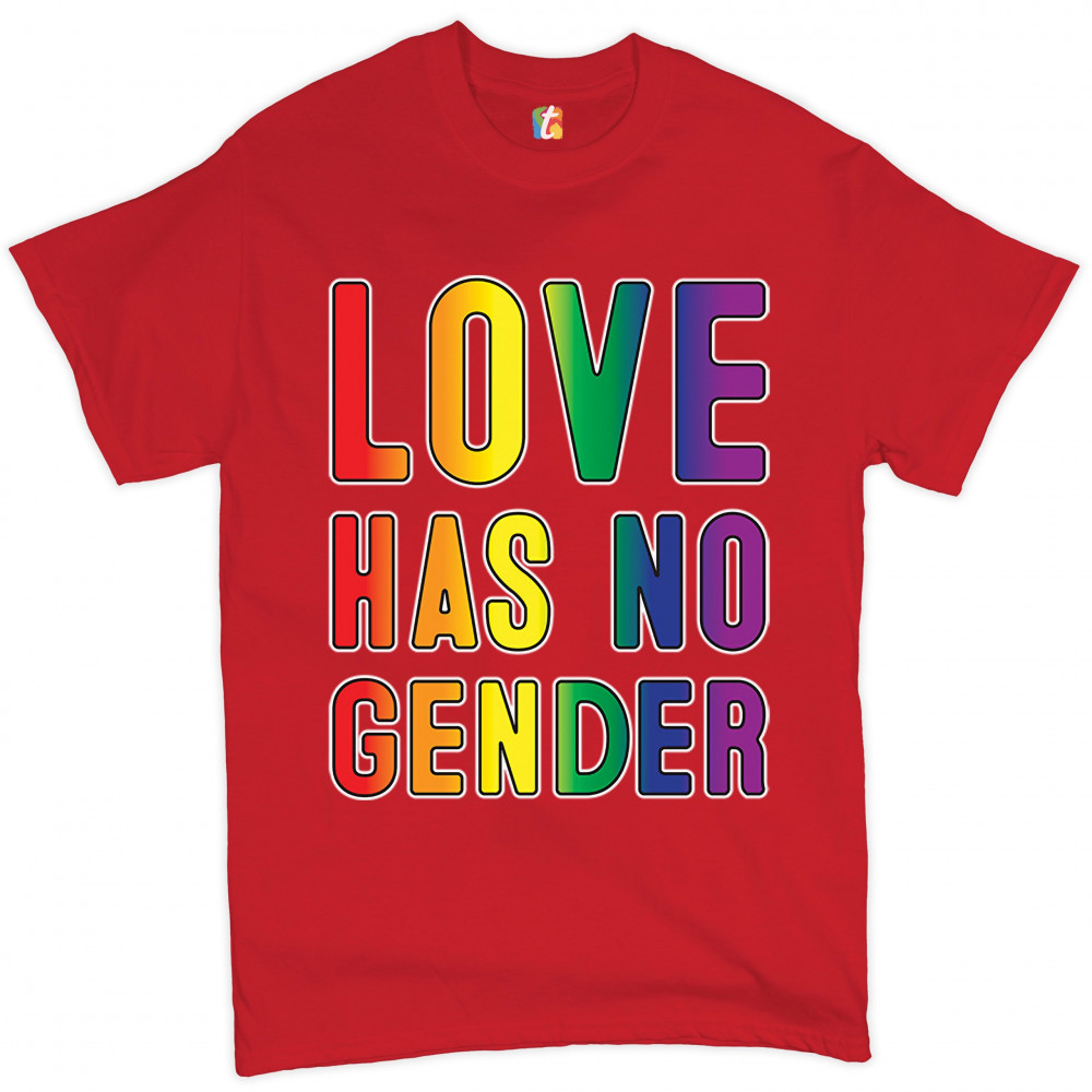 LOVE HAS NO GENDER t-shirt lesbian gay bi transgender queer ally men's tee red
