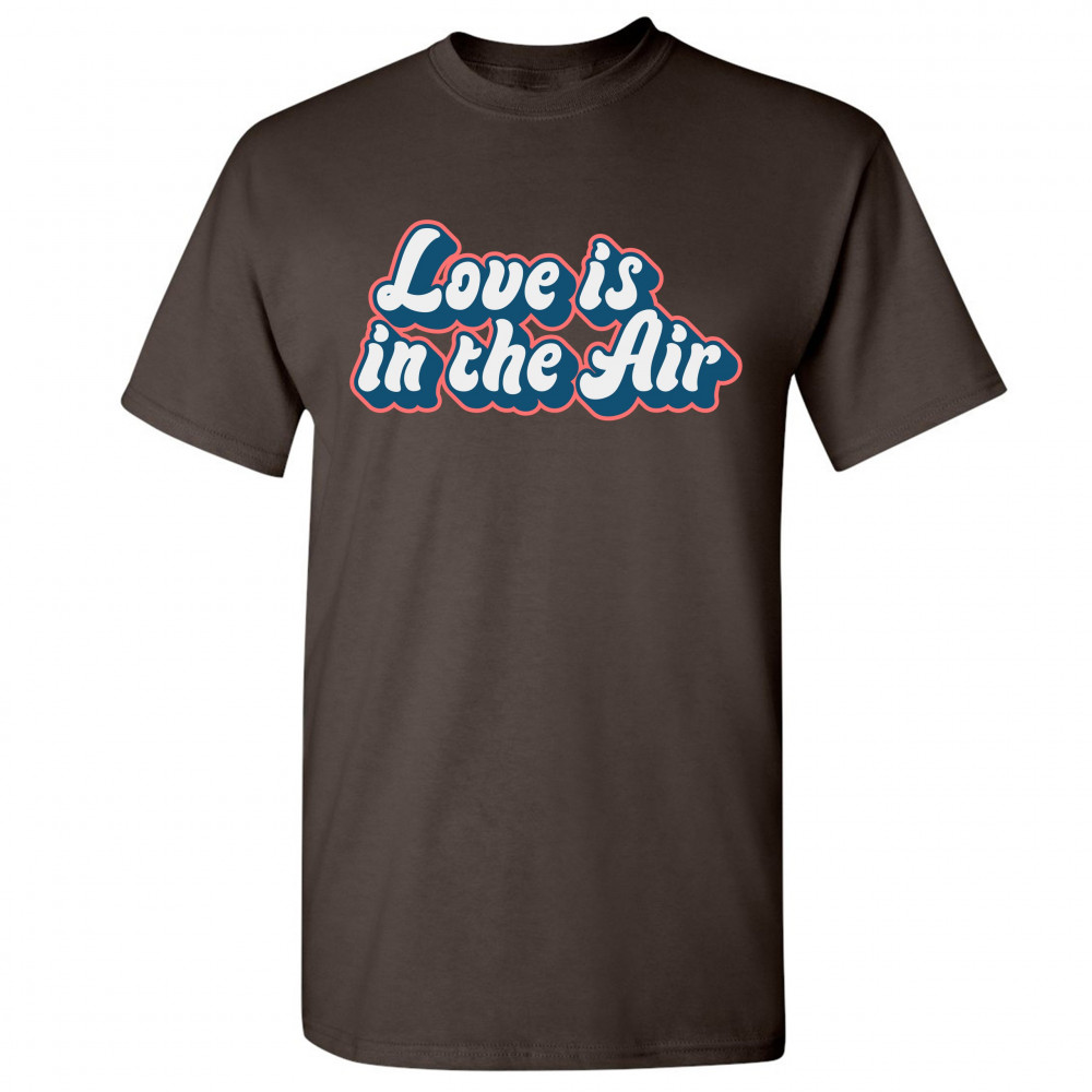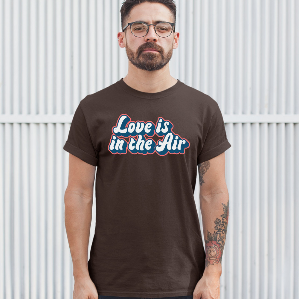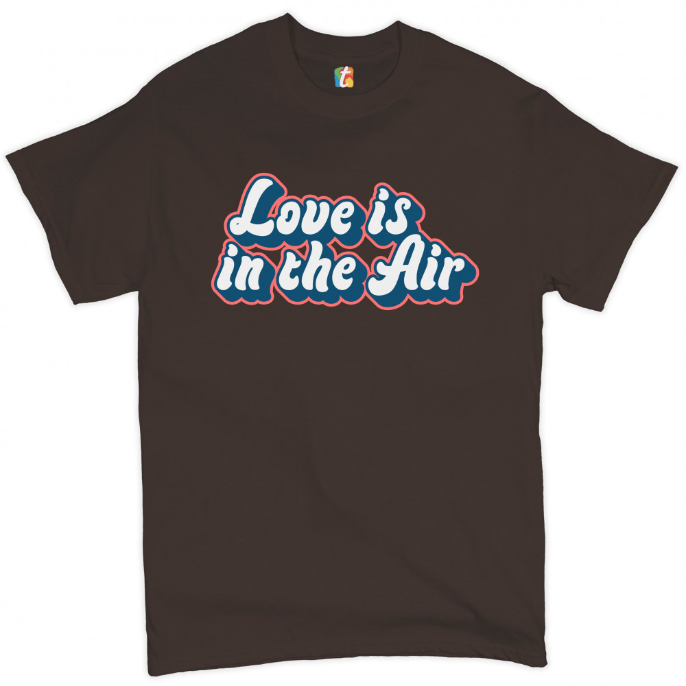 LOVE IS IN THE AIR t-shirt happy valentine's day romance good vibes men's tee brown