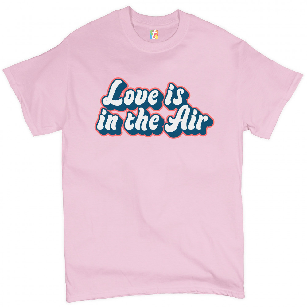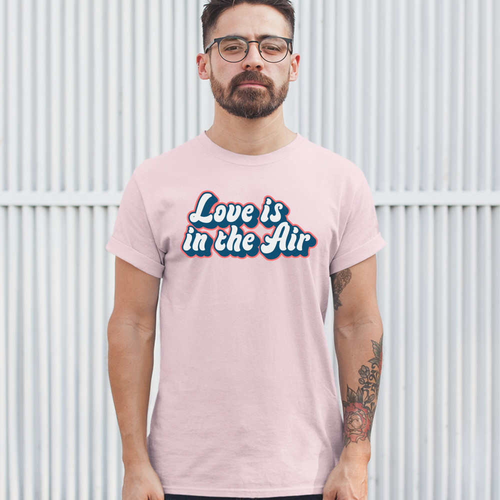 LOVE IS IN THE AIR t-shirt happy valentine's day romance good vibes men's tee light pink