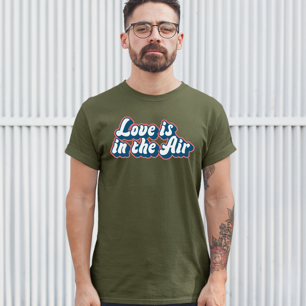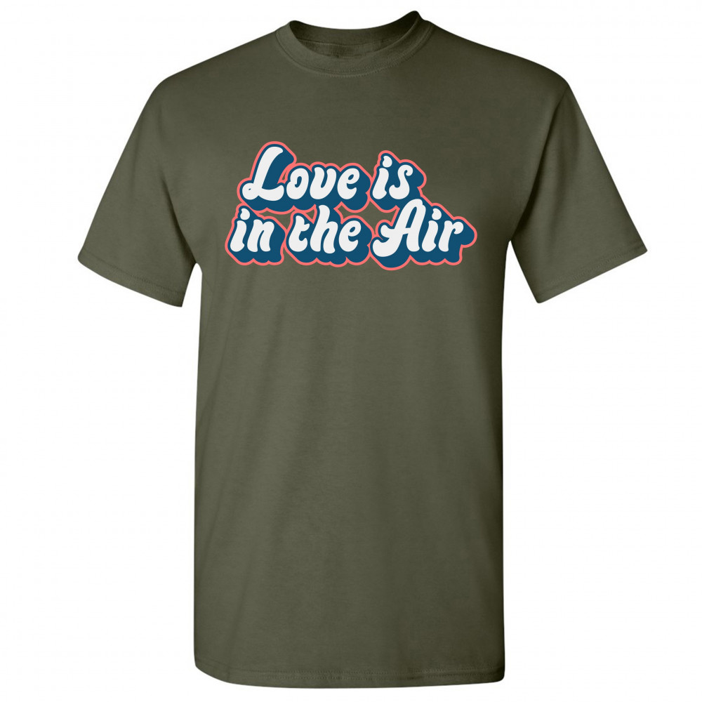 LOVE IS IN THE AIR t-shirt happy valentine's day romance good vibes men's tee military green