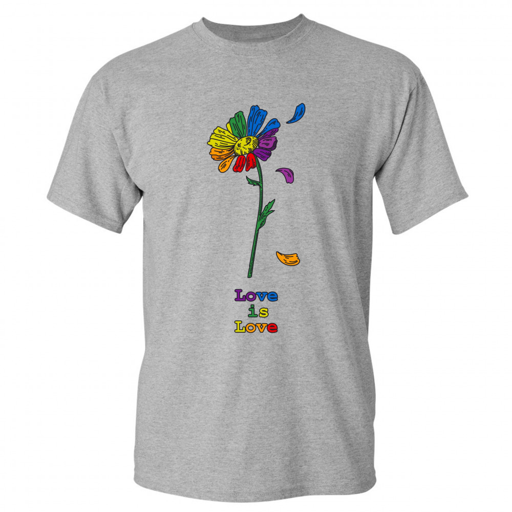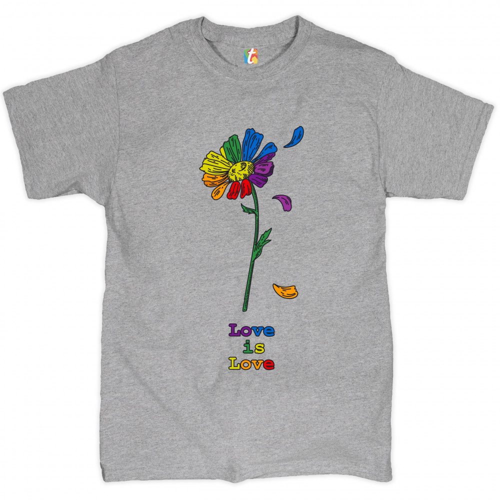 LOVE IS LOVE t-shirt rainbow flower lgbt acceptance gay pride men's tee gray