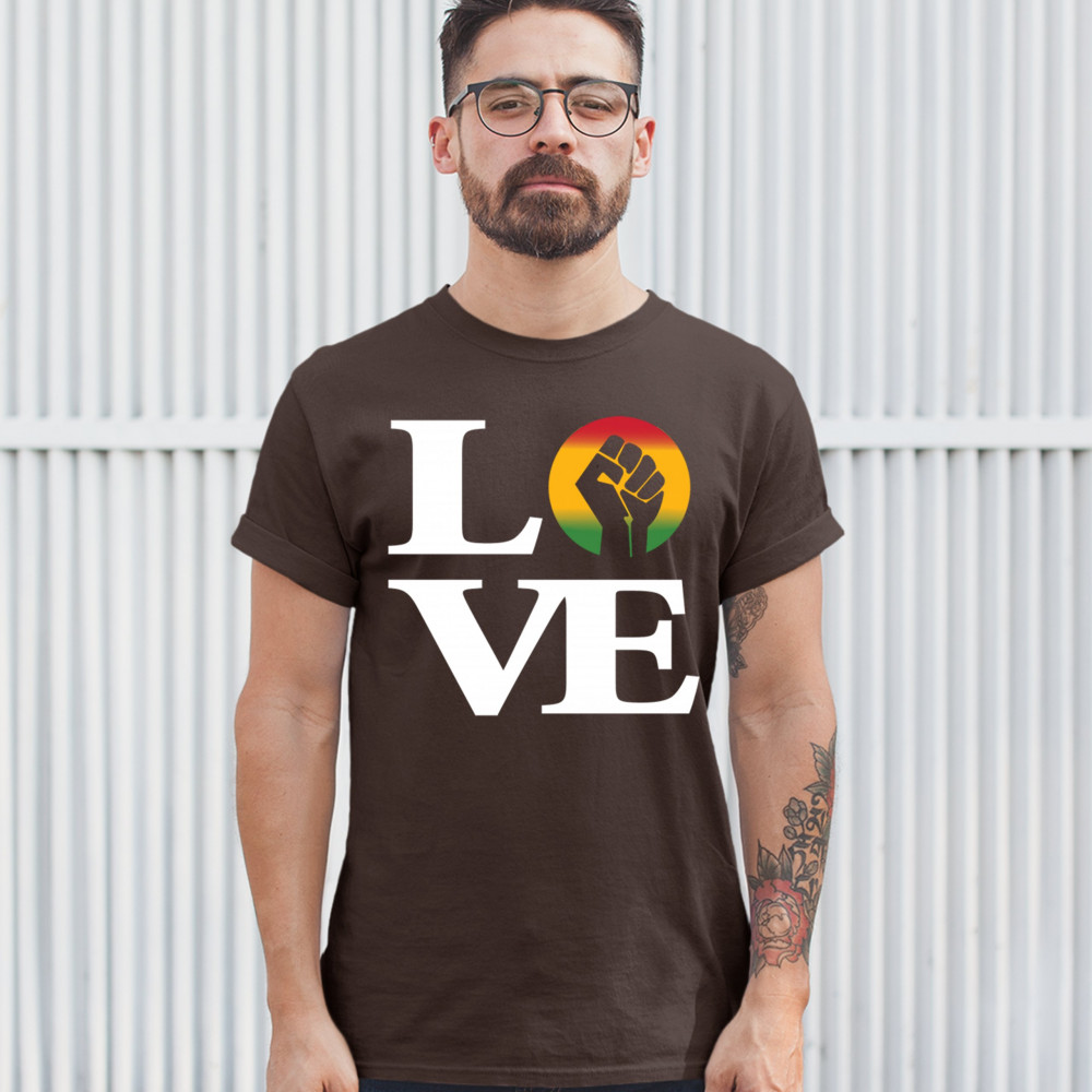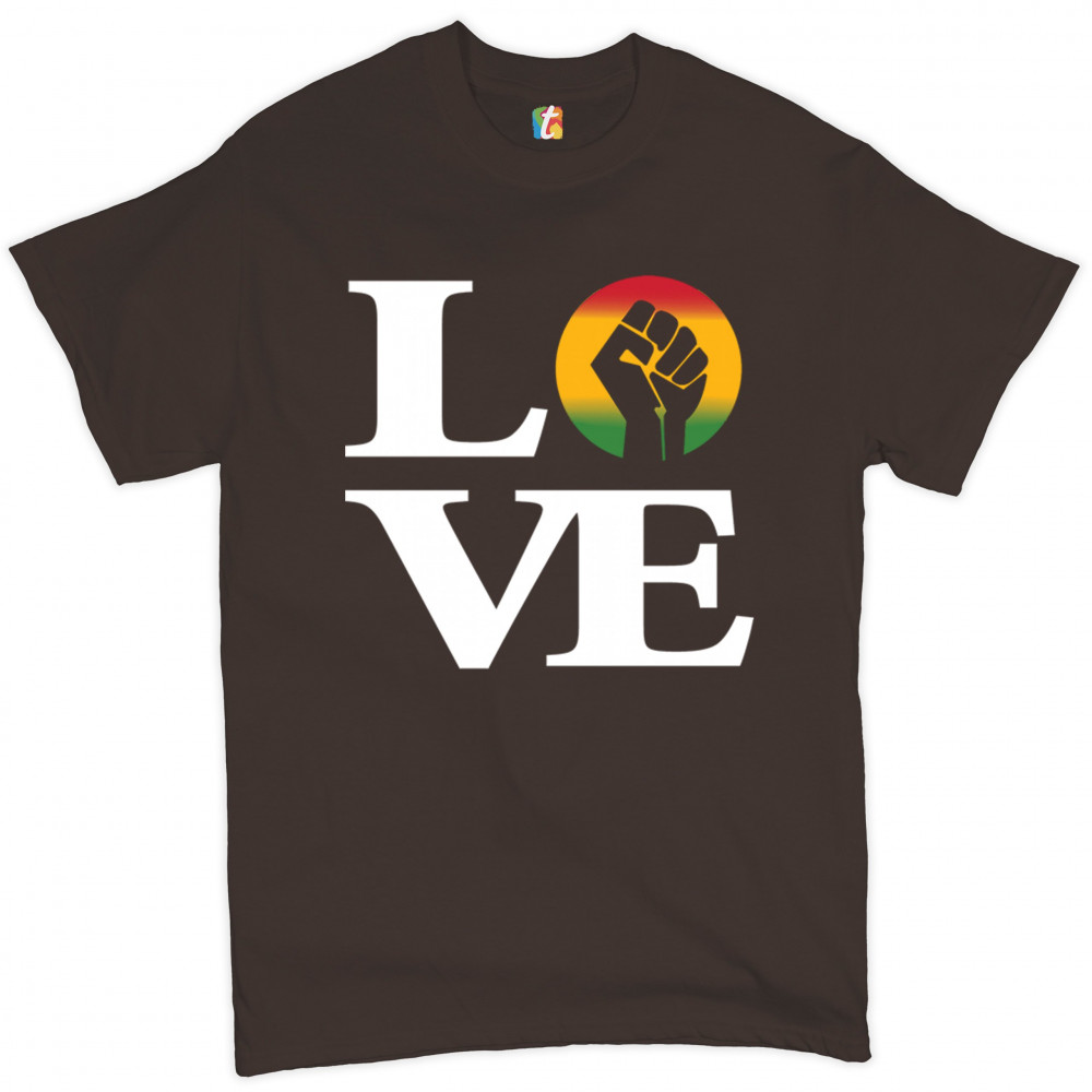 LOVE POWER FIST t-shirt black lives matter african american men's tee brown