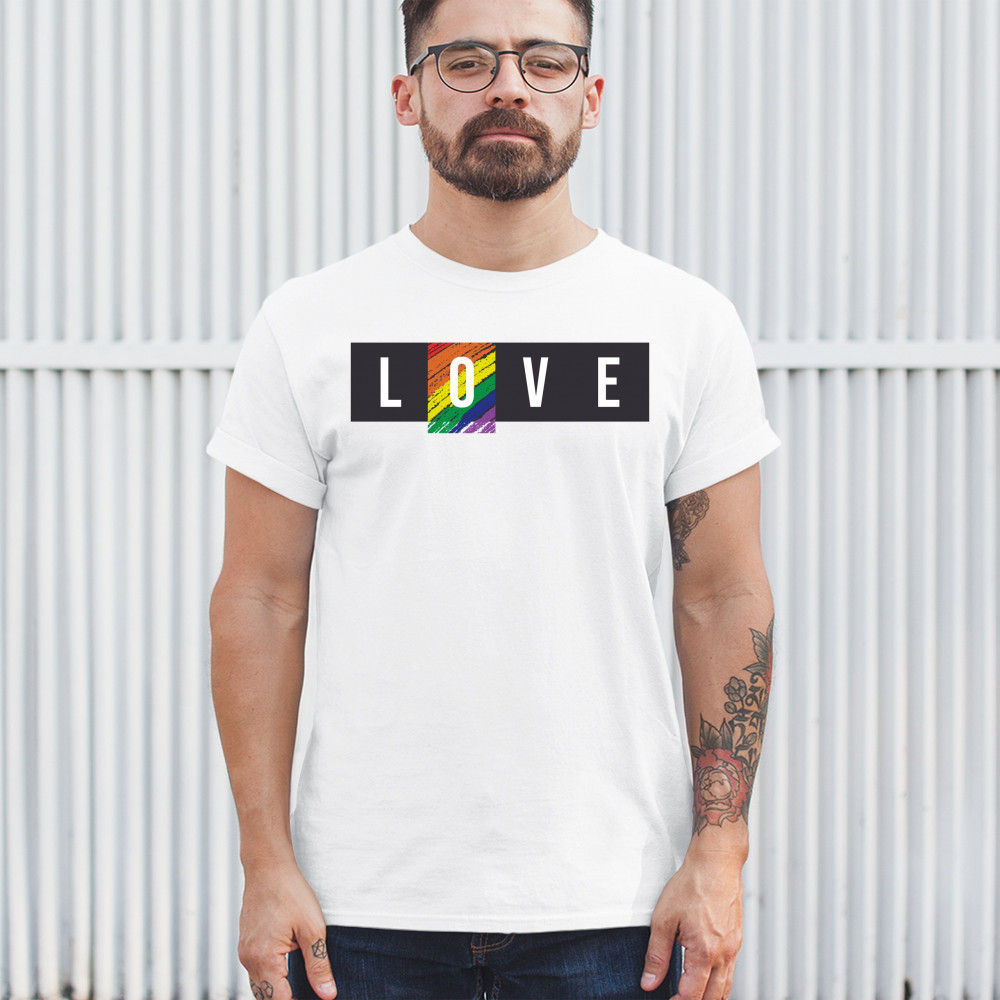 LOVE t-shirt gay pride rainbow lgbtq tolerance equality men's tee white