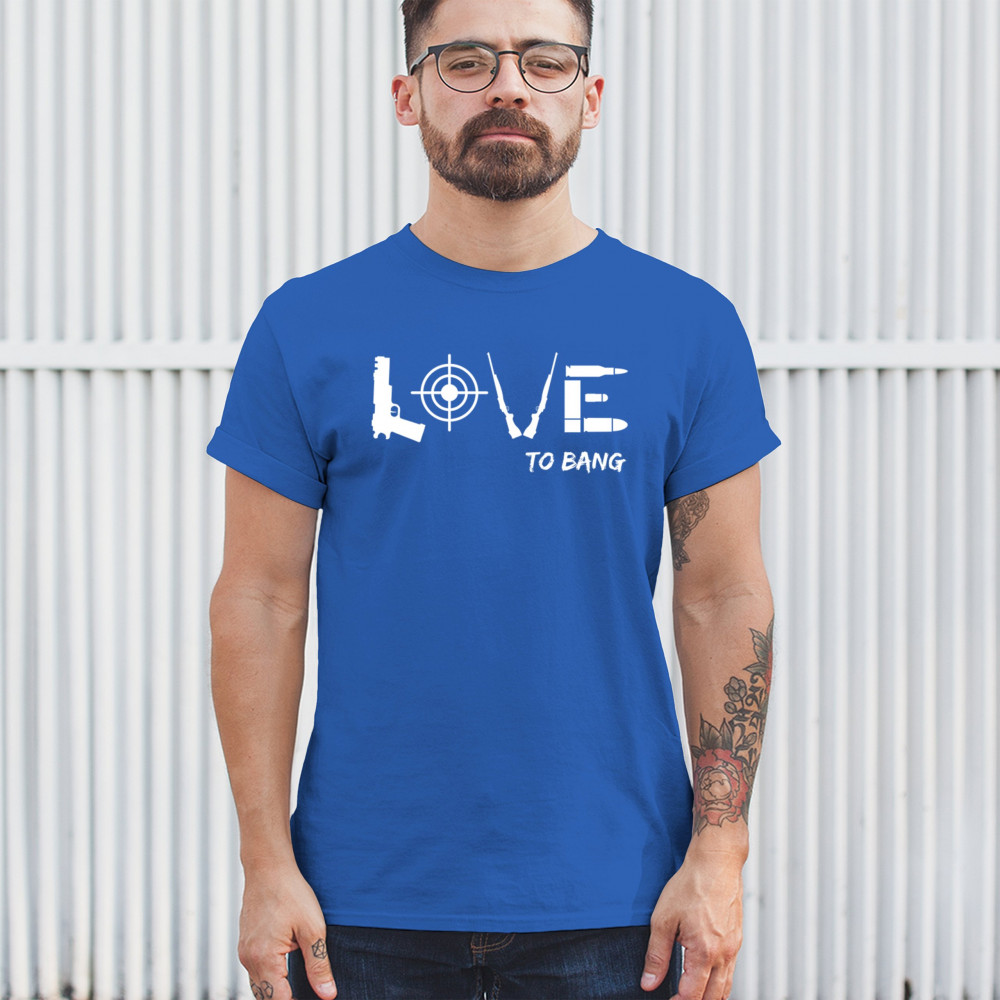 Embrace your right to bear arms with our bold "LOVE To Bang" T-shirt. Whether you're a service veteran, a militia member, or a staunch advocate for the 4th amendment, this shirt's clever design ensures you stand out. Celebrate your love for freedom—and your sense of humor—with apparel that hits the mark.