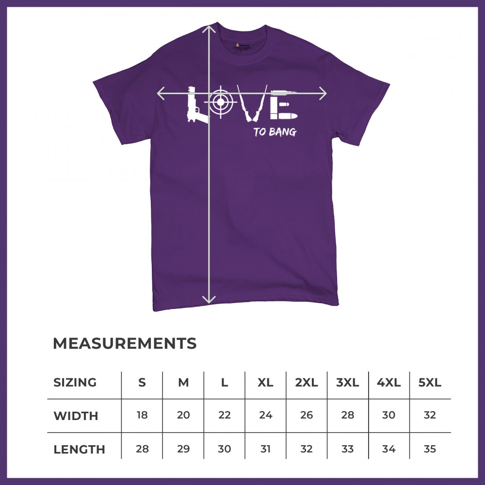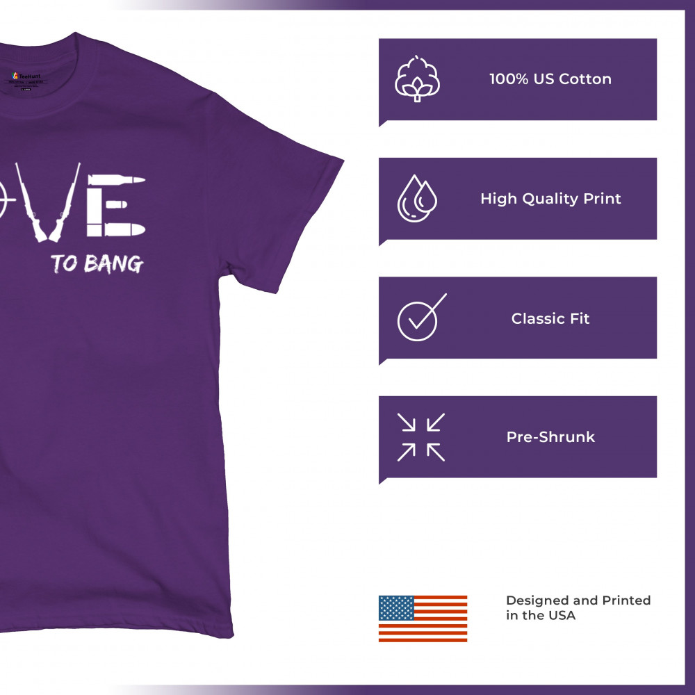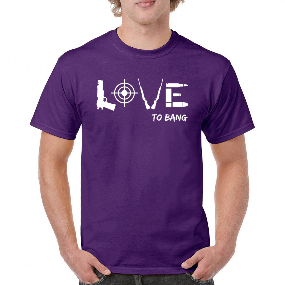 Embrace your right to bear arms with our bold "LOVE To Bang" T-shirt. Whether you're a service veteran, a militia member, or a staunch advocate for the 4th amendment, this shirt's clever design ensures you stand out. Celebrate your love for freedom—and your sense of humor—with apparel that hits the mark.