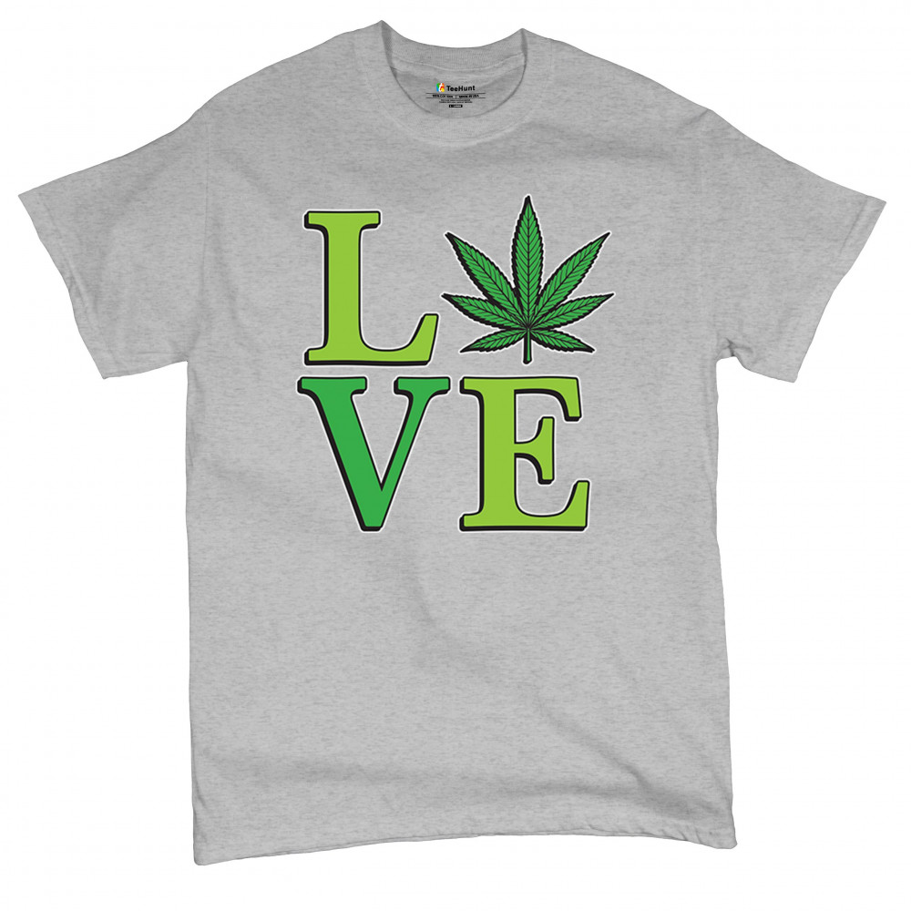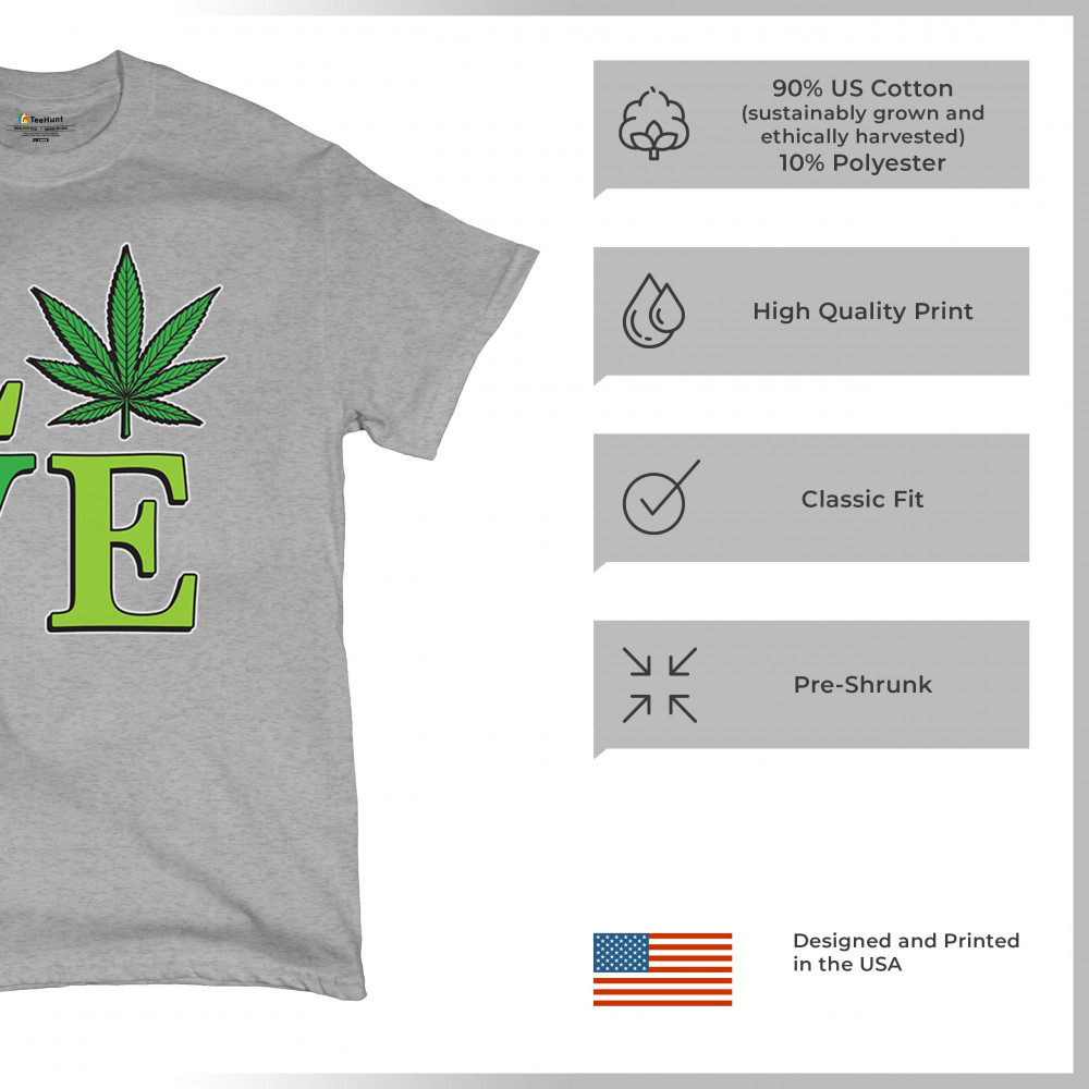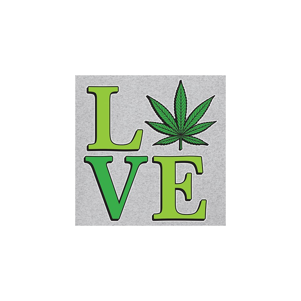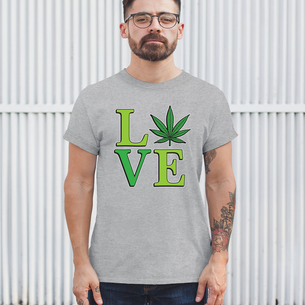 LOVE design with a bold weed leaf. Perfect for 420 fans, stoners, cannabis lifestyle wear, green pride, and marijuana lovers.