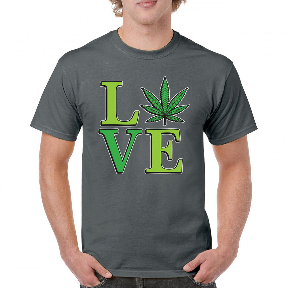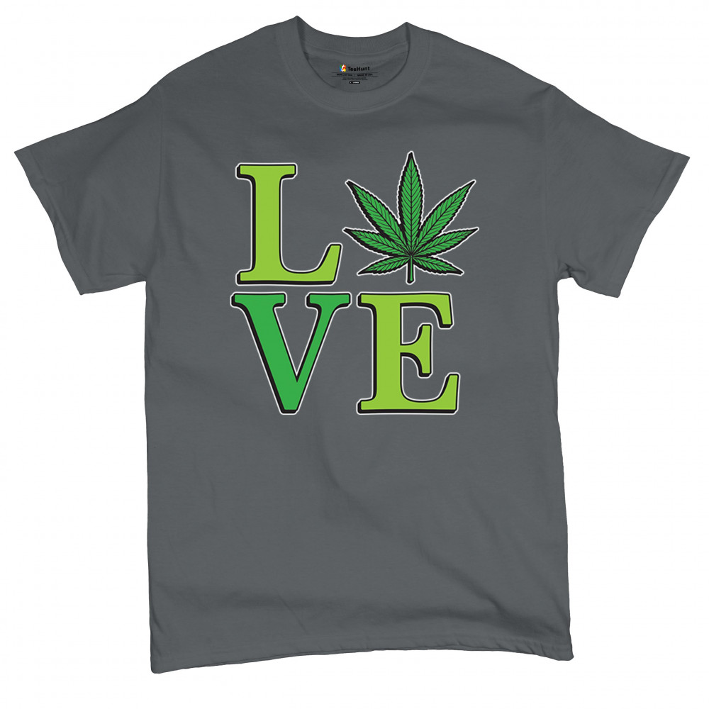 LOVE design with a bold weed leaf. Perfect for 420 fans, stoners, cannabis lifestyle wear, green pride, and marijuana lovers.