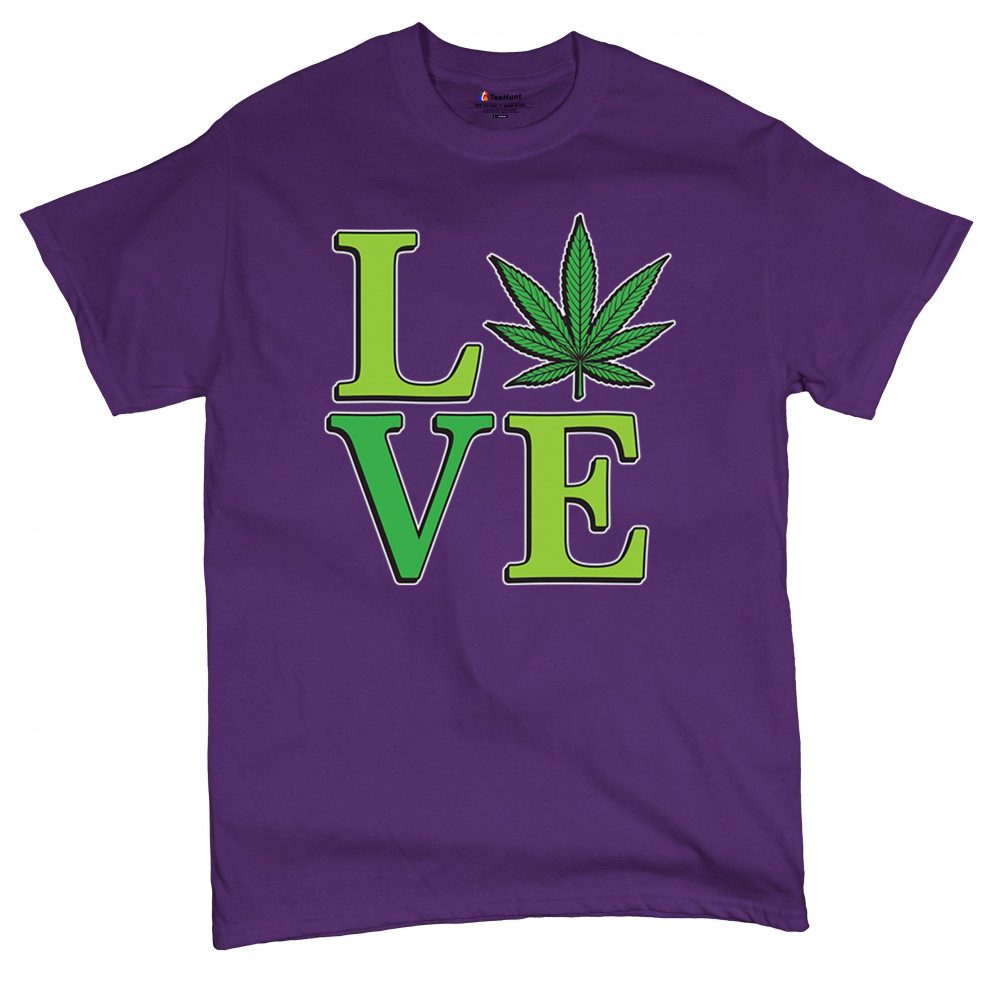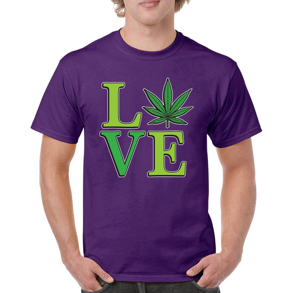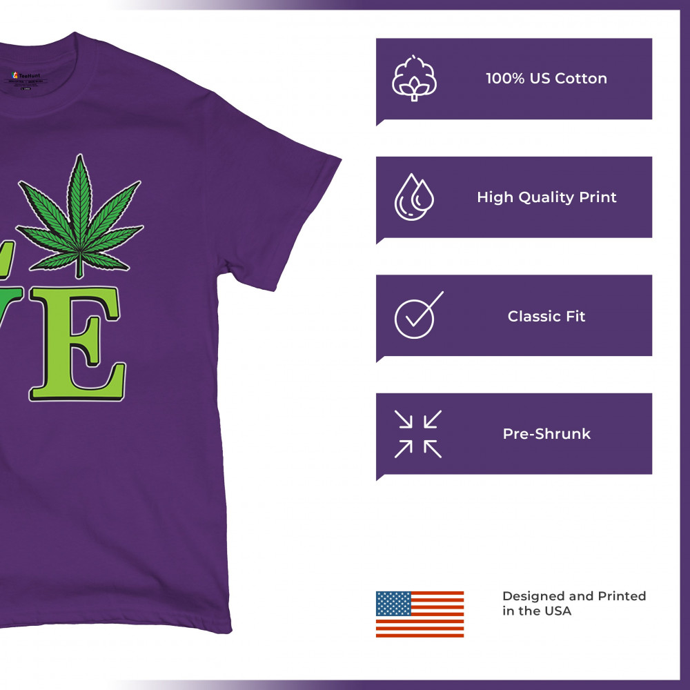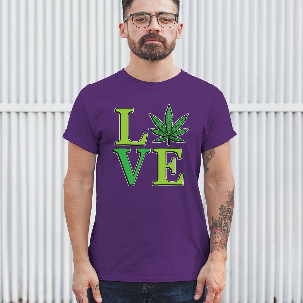 LOVE design with a bold weed leaf. Perfect for 420 fans, stoners, cannabis lifestyle wear, green pride, and marijuana lovers.
