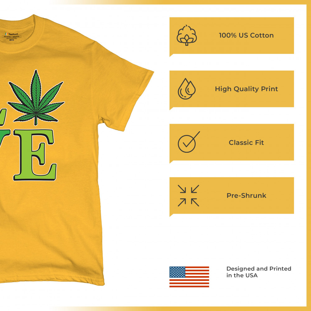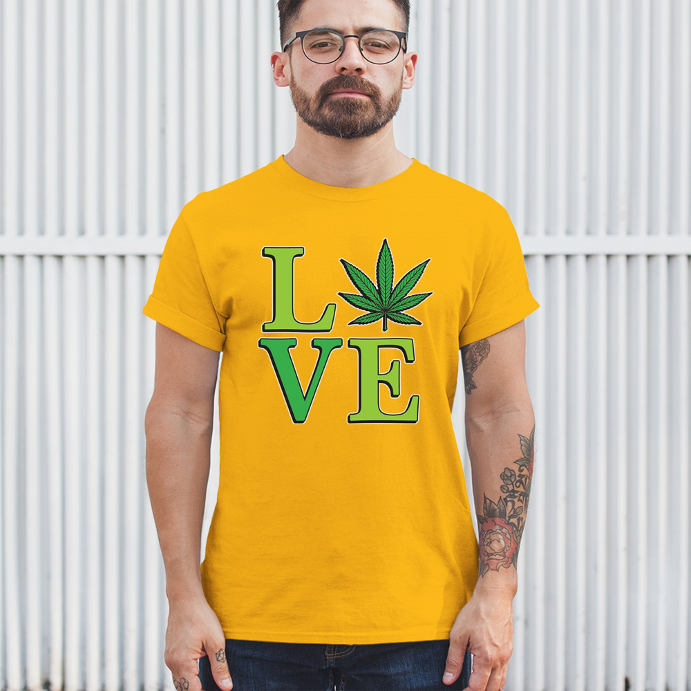 LOVE design with a bold weed leaf. Perfect for 420 fans, stoners, cannabis lifestyle wear, green pride, and marijuana lovers.