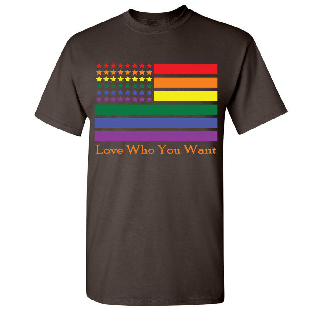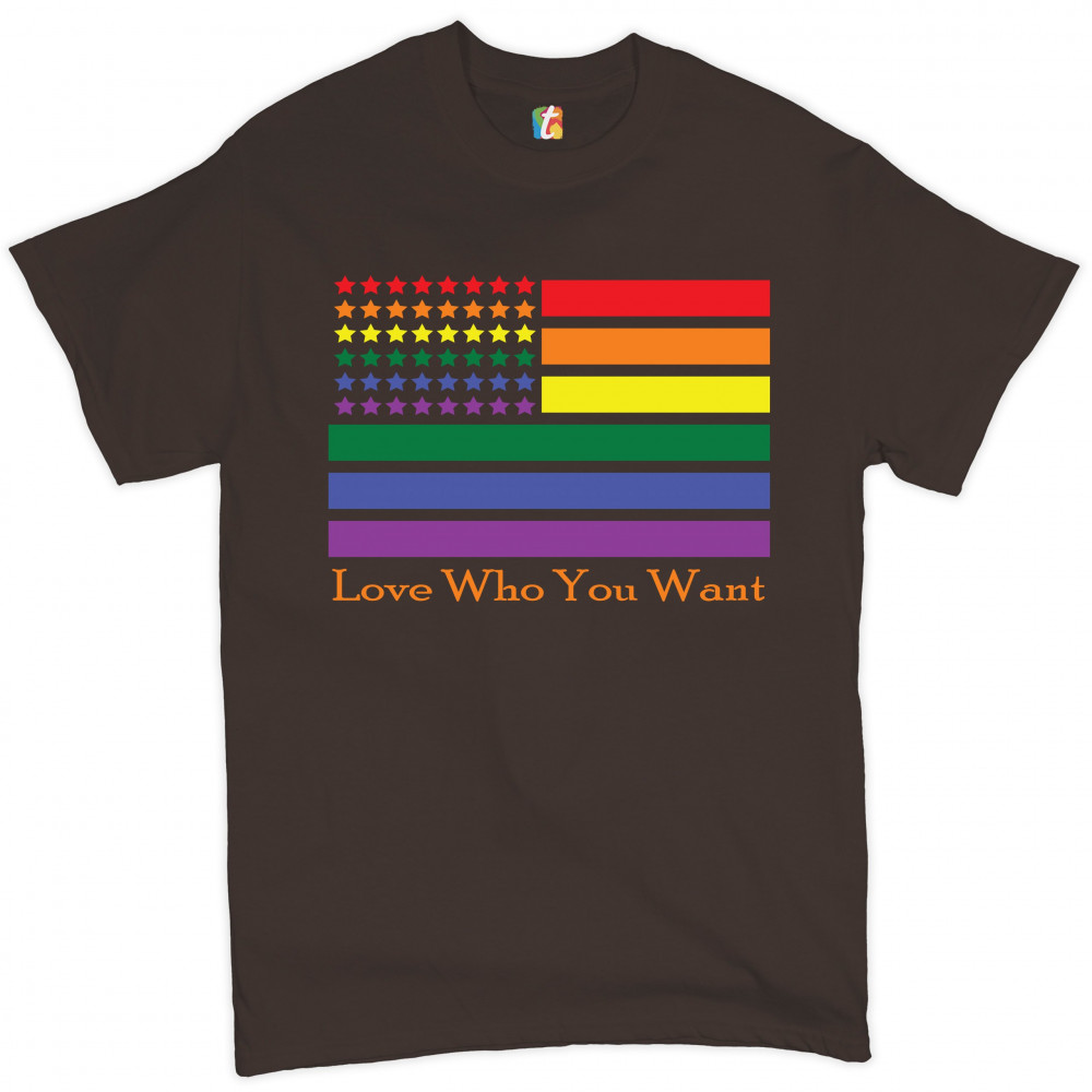 LOVE WHO YOU WANT t-shirt american gay pride rainbow flag lgbt men's tee brown