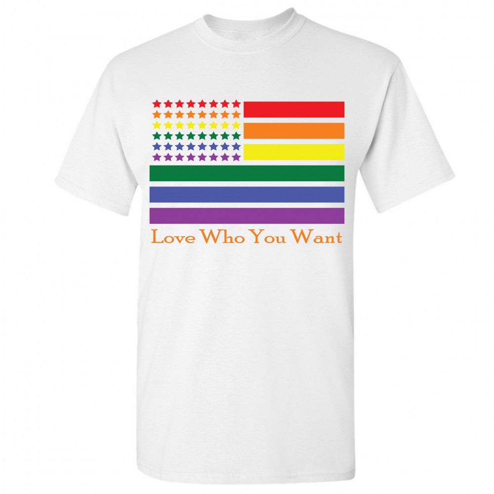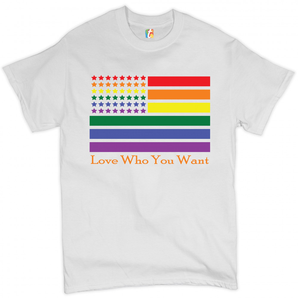 LOVE WHO YOU WANT t-shirt american gay pride rainbow flag lgbt men's tee white