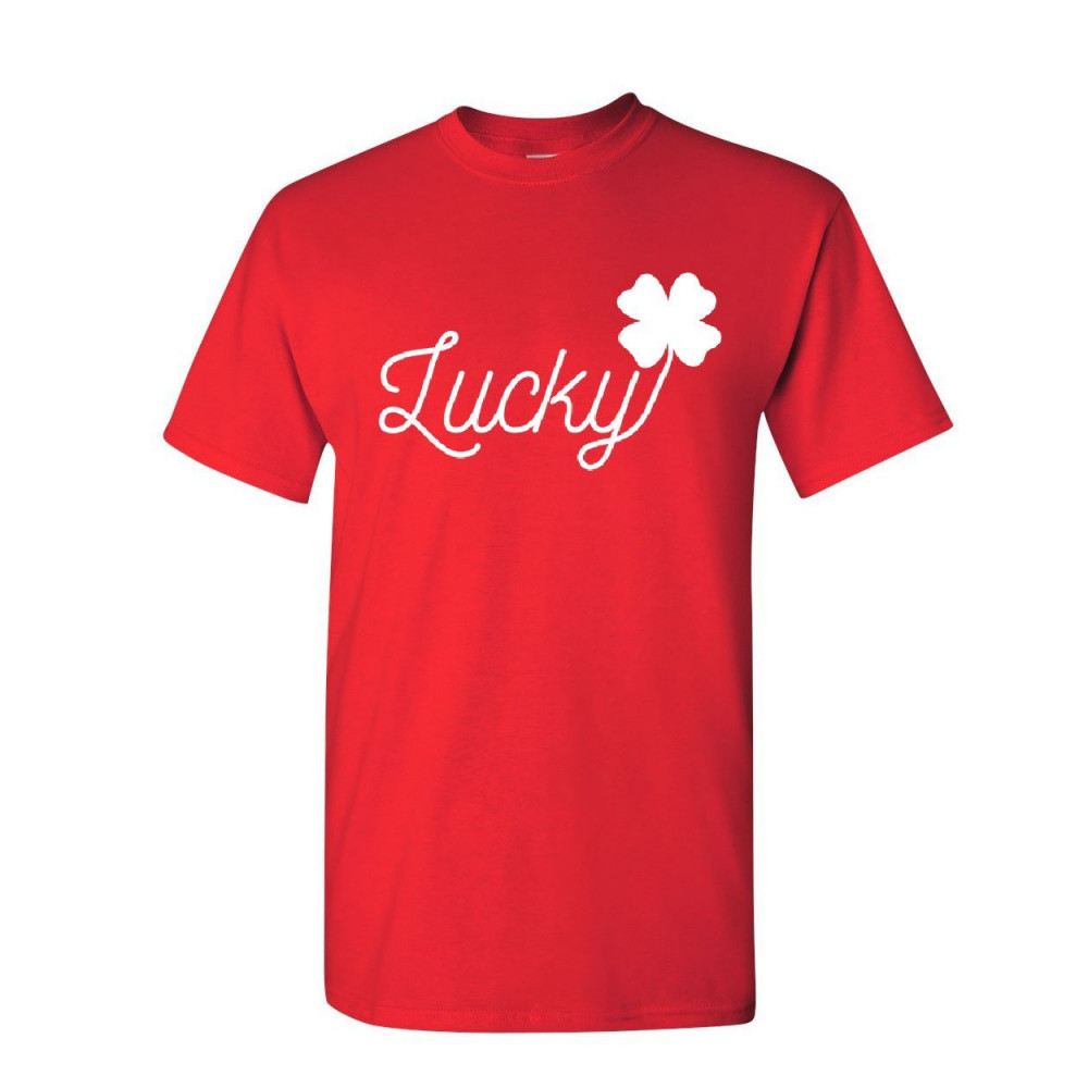 LUCKY SHAMROCK lucky irish t-shirt st. patrick's day shamrock pub beer drinking mens tee shirt red