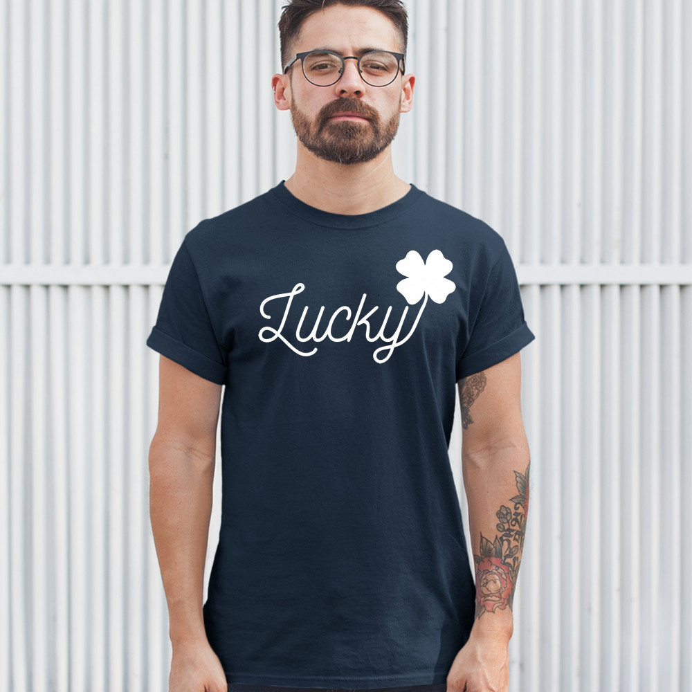 LUCKY SHAMROCK t-shirt st. patrick's day funny holiday men's tee navy blue