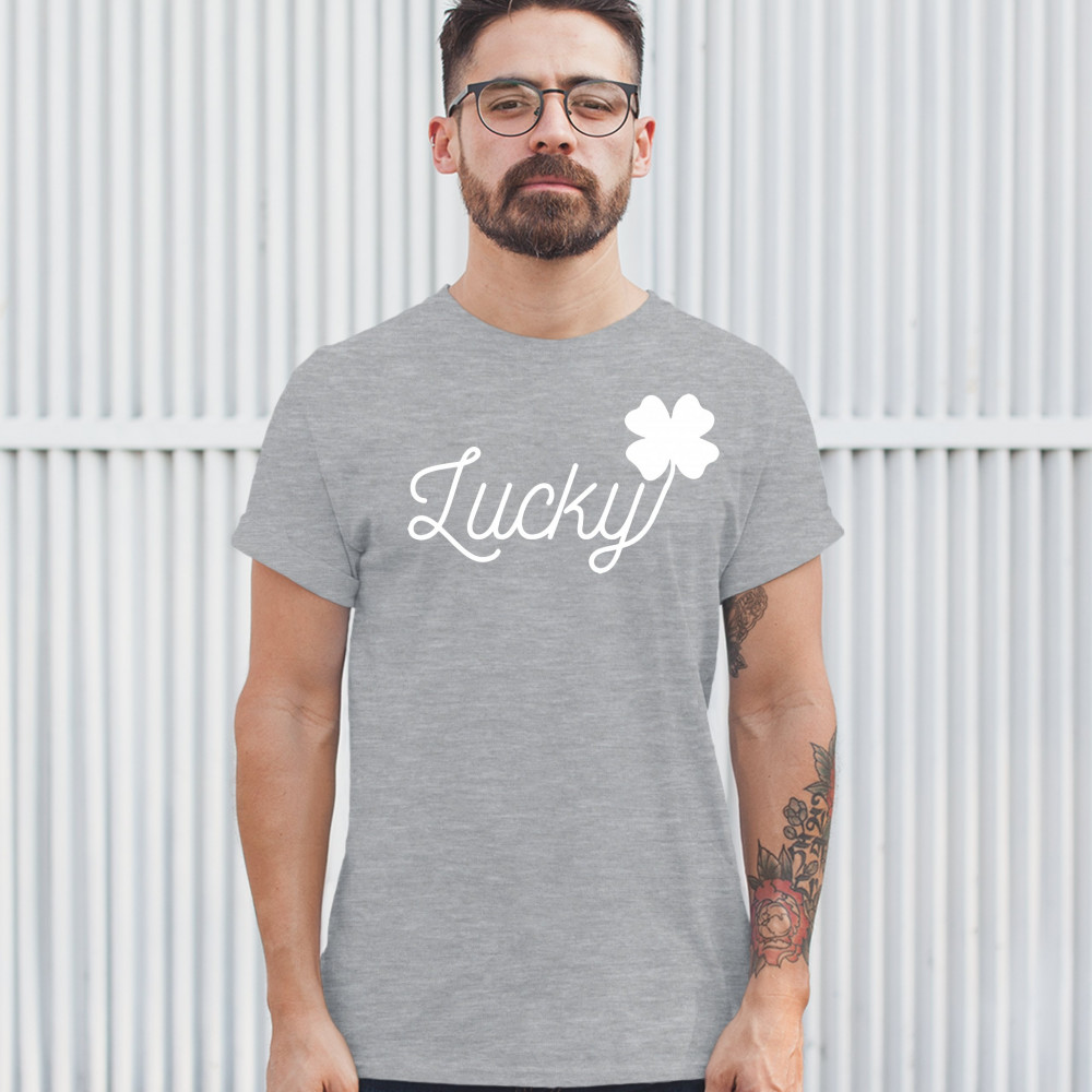 LUCKY SHAMROCK t-shirt st. patrick's day funny holiday men's tee gray