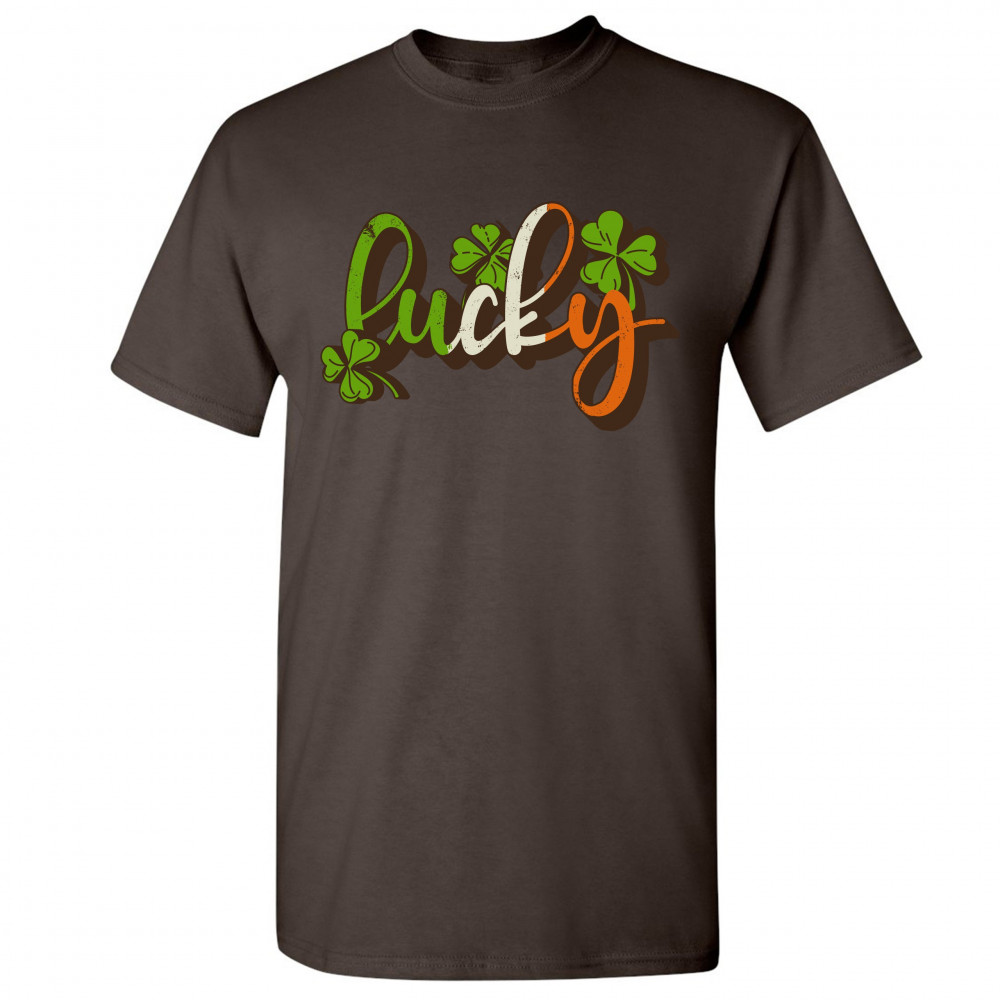 LUCKY t-shirt irish st. patrick's day leprechaun elves shenanigans men's tee brown
