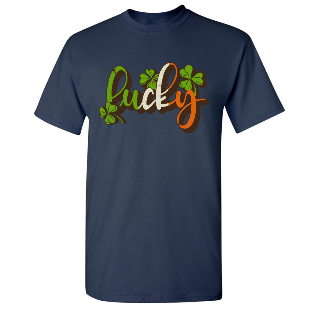 LUCKY t-shirt irish st. patrick's day leprechaun elves shenanigans men's tee navy blue