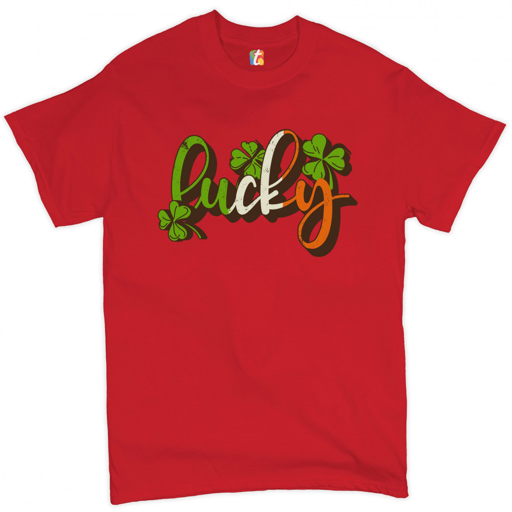 LUCKY t-shirt irish st. patrick's day leprechaun elves shenanigans men's tee red