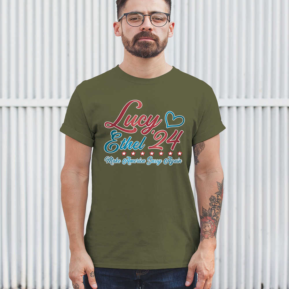 Step back into the golden age of television with this unique election-themed design. Perfect for fans of classic American TV, this design blends nostalgia with modern-day election humor. Whether you're wearing it to make a statement or just for fun, this design is sure to turn heads and spark conversations. Ideal for casual wear, themed parties, or as a thoughtful gift for TV buffs. Celebrate the past while looking ahead with this delightful and sassy design.