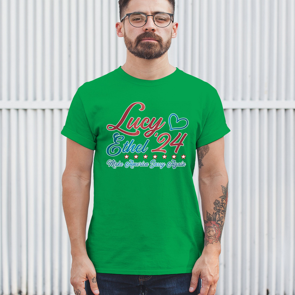 Step back into the golden age of television with this unique election-themed design. Perfect for fans of classic American TV, this design blends nostalgia with modern-day election humor. Whether you're wearing it to make a statement or just for fun, this design is sure to turn heads and spark conversations. Ideal for casual wear, themed parties, or as a thoughtful gift for TV buffs. Celebrate the past while looking ahead with this delightful and sassy design.