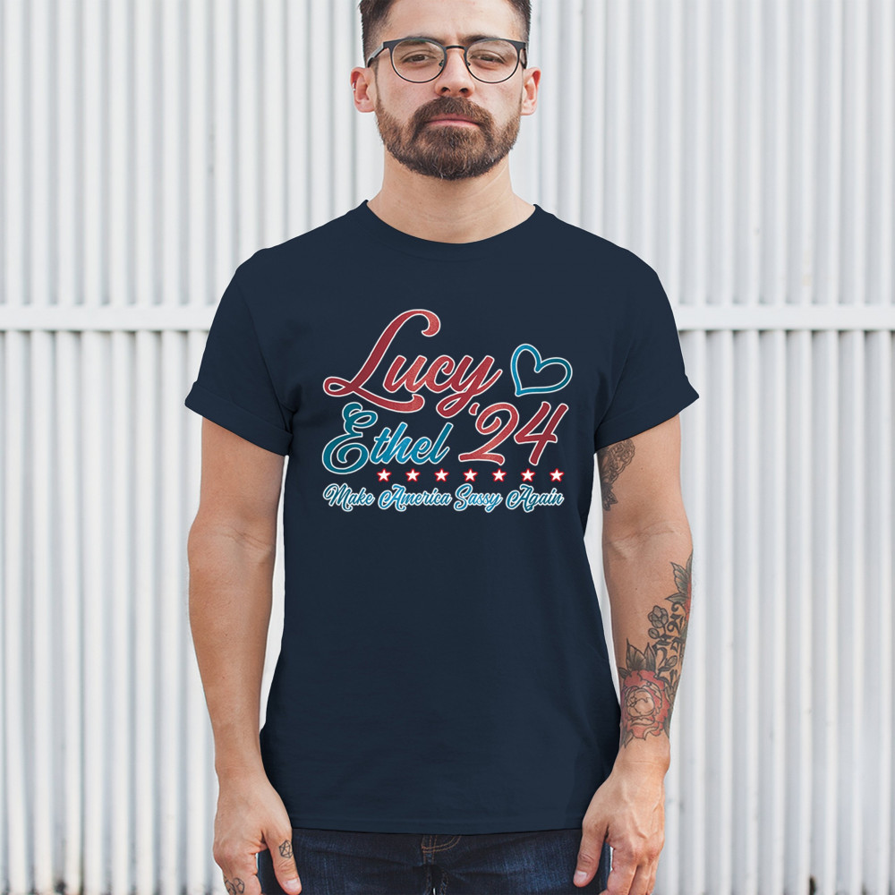 Step back into the golden age of television with this unique election-themed design. Perfect for fans of classic American TV, this design blends nostalgia with modern-day election humor. Whether you're wearing it to make a statement or just for fun, this design is sure to turn heads and spark conversations. Ideal for casual wear, themed parties, or as a thoughtful gift for TV buffs. Celebrate the past while looking ahead with this delightful and sassy design.