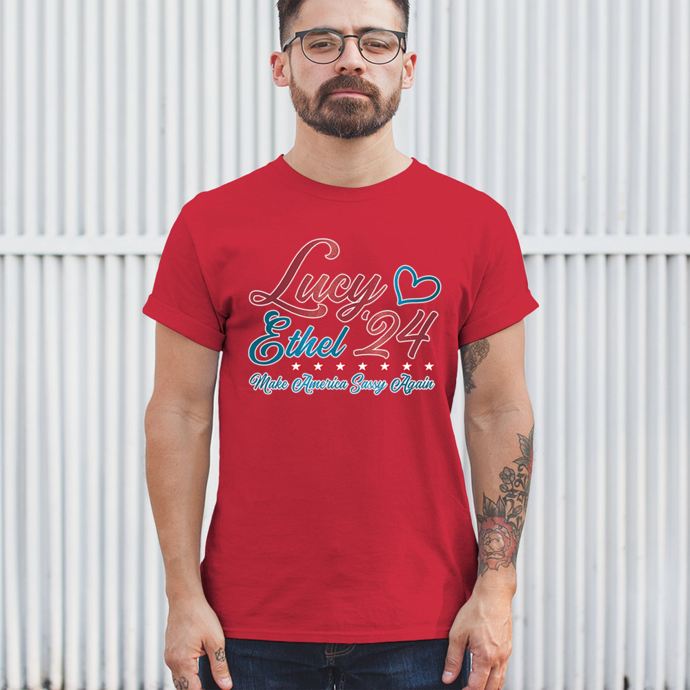 Step back into the golden age of television with this unique election-themed design. Perfect for fans of classic American TV, this design blends nostalgia with modern-day election humor. Whether you're wearing it to make a statement or just for fun, this design is sure to turn heads and spark conversations. Ideal for casual wear, themed parties, or as a thoughtful gift for TV buffs. Celebrate the past while looking ahead with this delightful and sassy design.