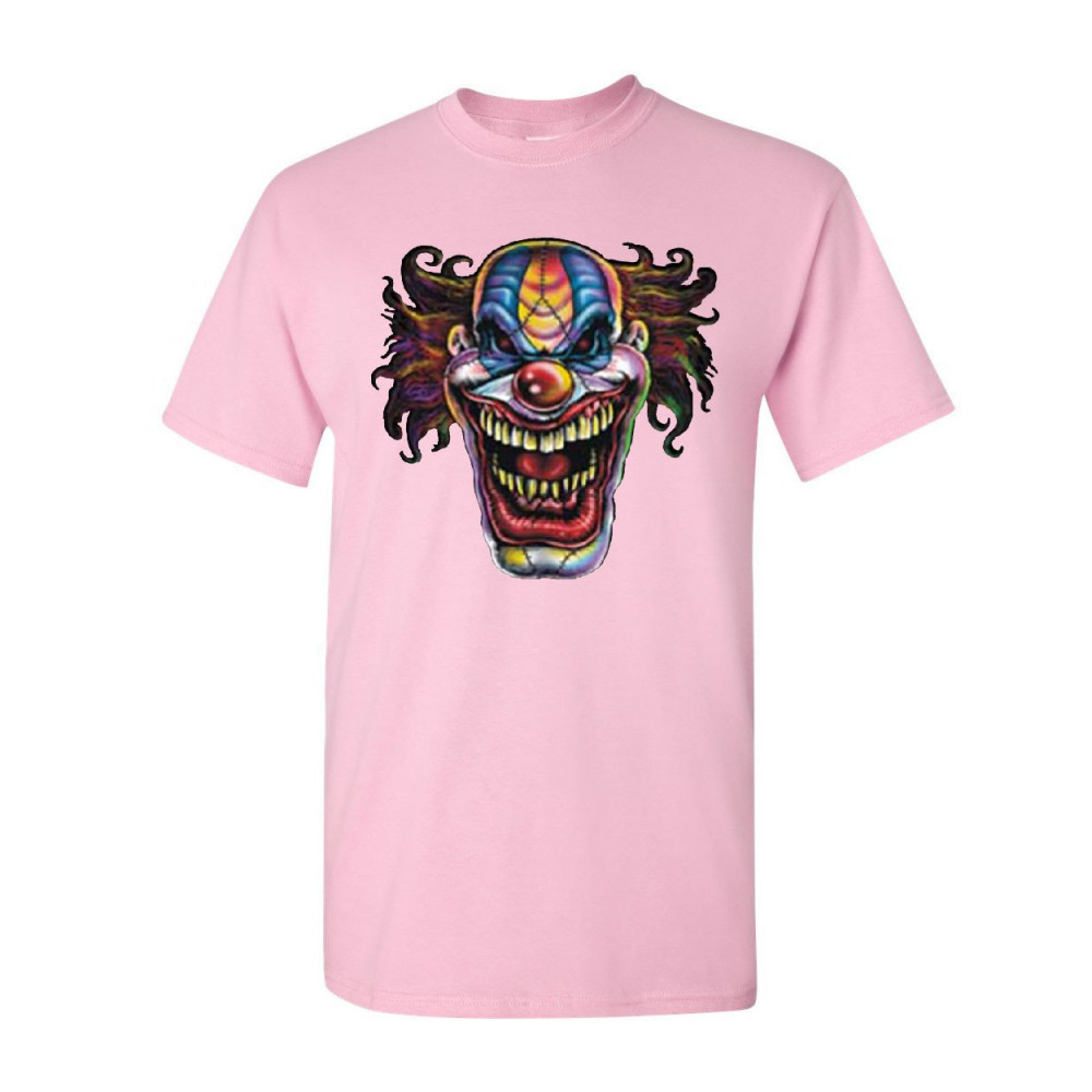 MAD EVIL CLOWN FACE t-shirt scary horror insane joker tee shirt light pink
