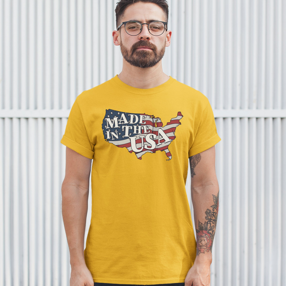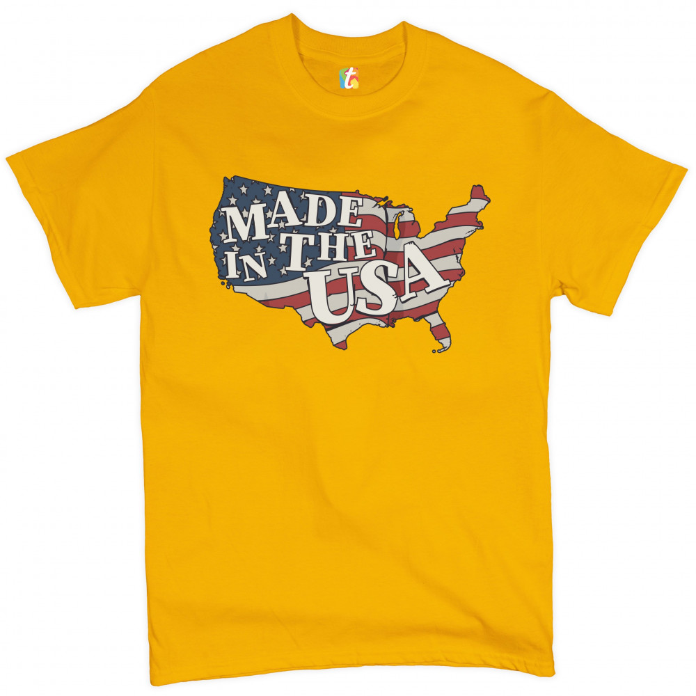 MADE IN THE USA t-shirt american flag independence day 4th of july men's tee yellow