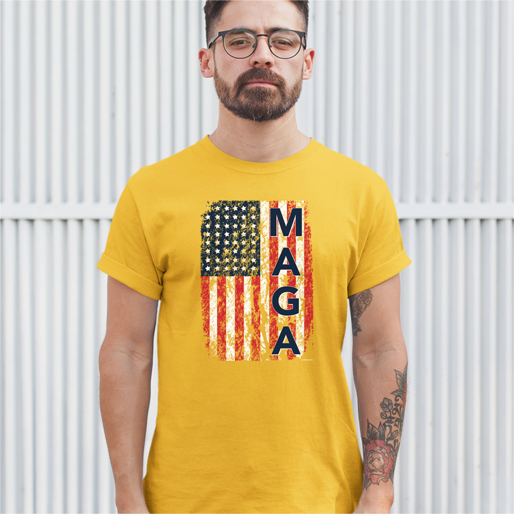 MAGA FLAG t-shirt donald trump 2020 flag keep america great men's tee yellow