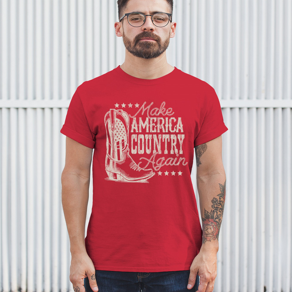 Bold patriotic country boot design with rustic flair. Perfect for rodeos, concerts, and anyone who wants to Make America Country Again.