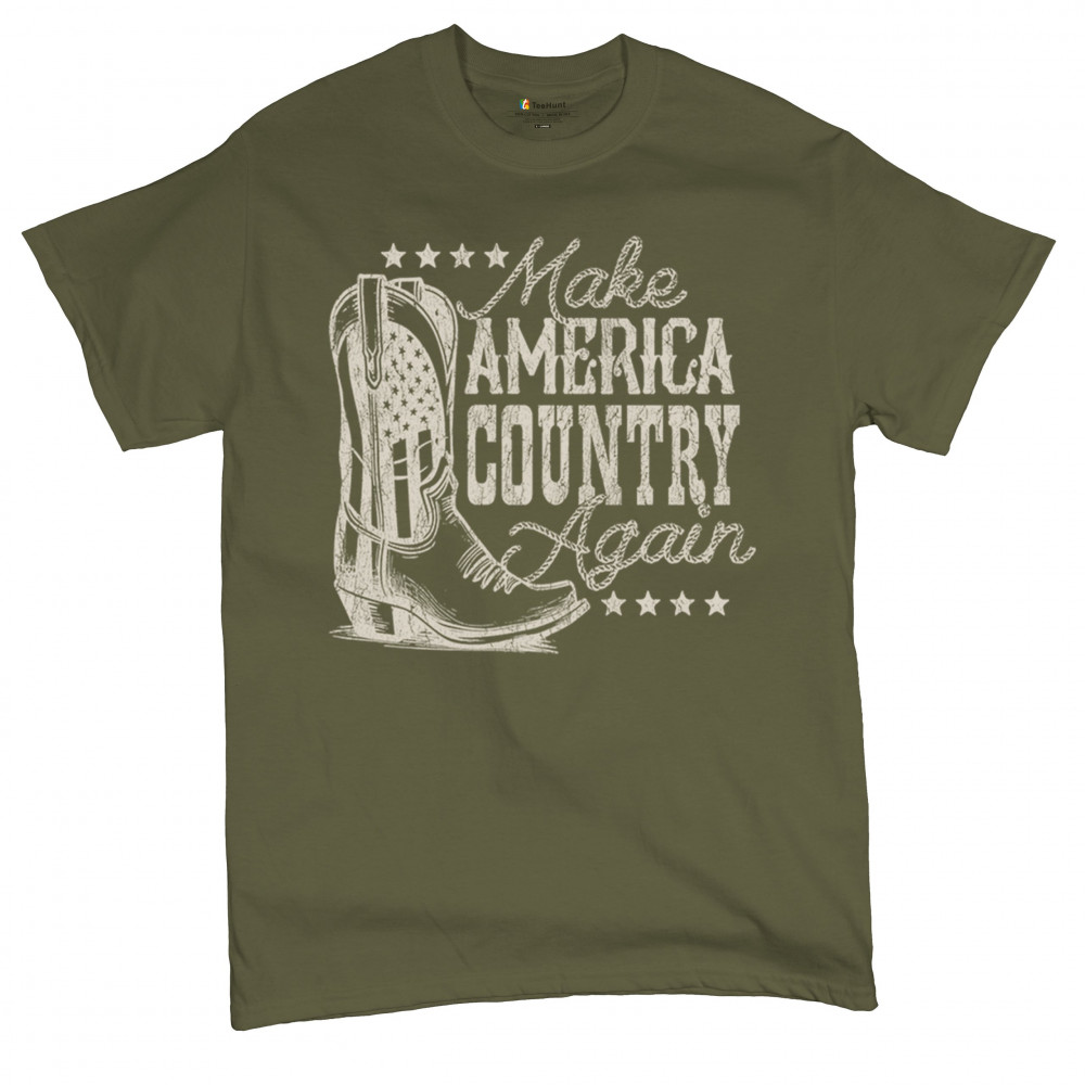 Stand tall for country pride with this bold vintage design featuring a cowboy boot stamped with the American flag. With a rustic look and strong patriotic message, this graphic brings together rural roots, western values, and old-school grit—perfect for rodeos, fairs, country shows, or Fourth of July gatherings.