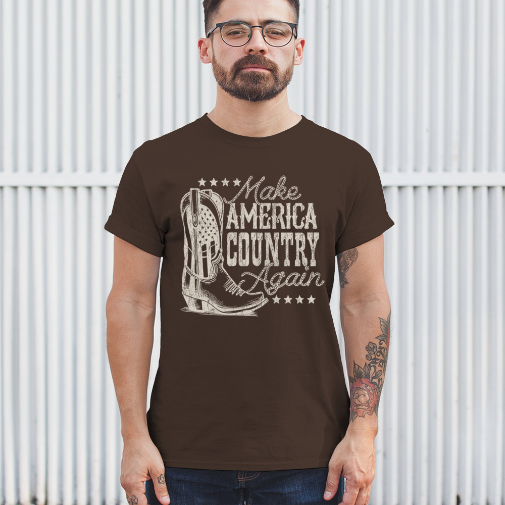 Bold patriotic country boot design with rustic flair. Perfect for rodeos, concerts, and anyone who wants to Make America Country Again.