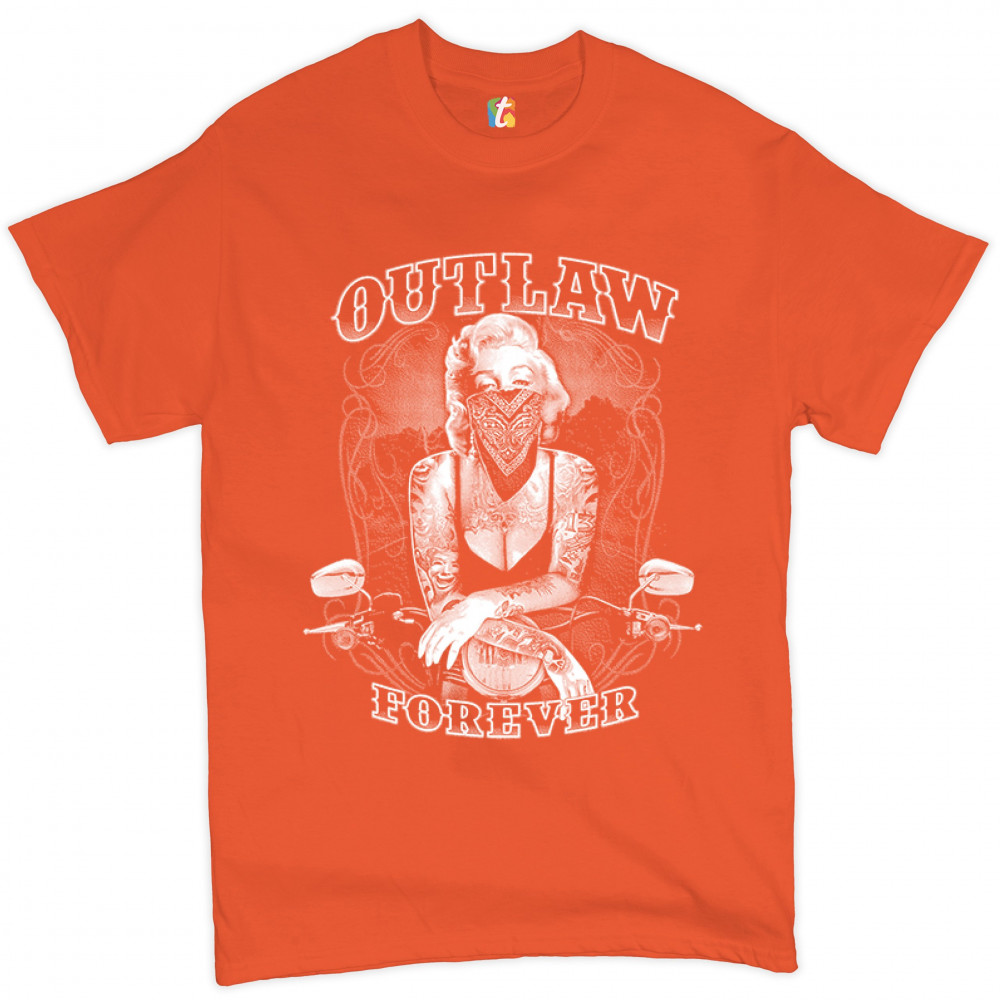 MARILYN MONROE OUTLAW FOREVER t-shirt biker live to ride motorcycle men's tee orange
