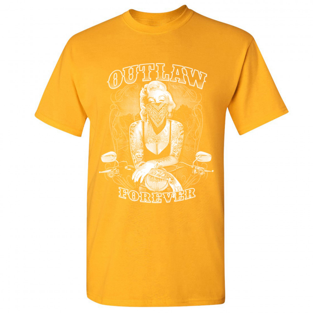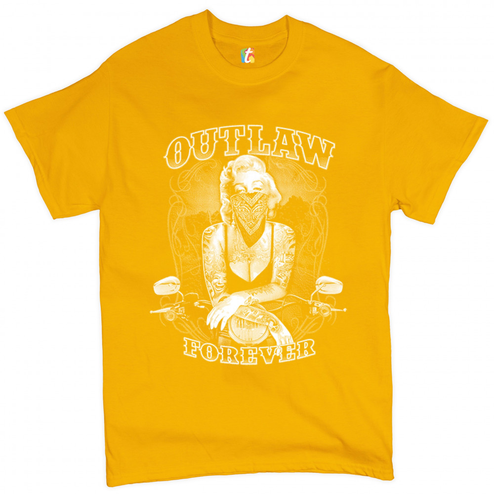 MARILYN MONROE OUTLAW FOREVER t-shirt biker live to ride motorcycle men's tee yellow