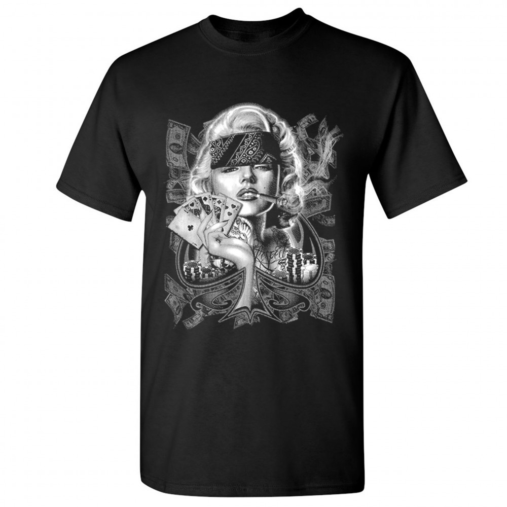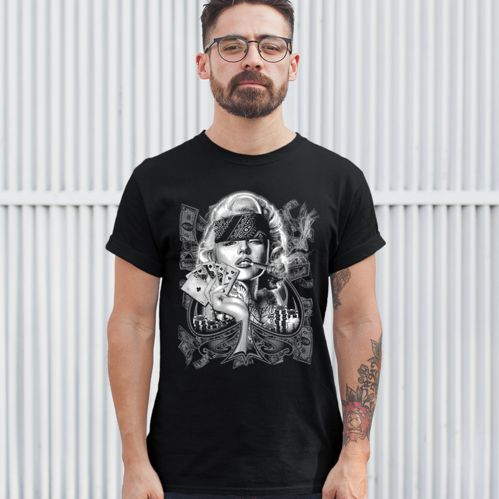 MARILYN MONROE PLAYING POKER SMOKING A JOINT t-shirt 420 marijuana men's tee black