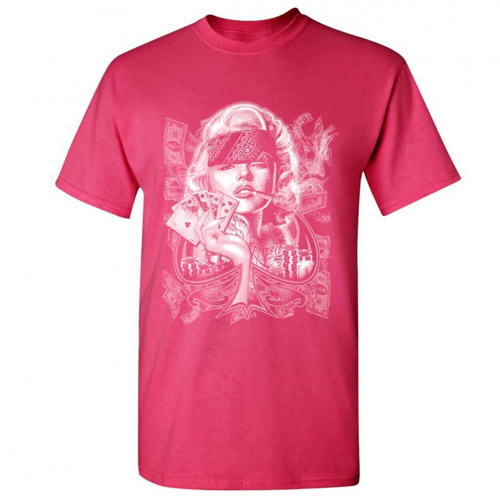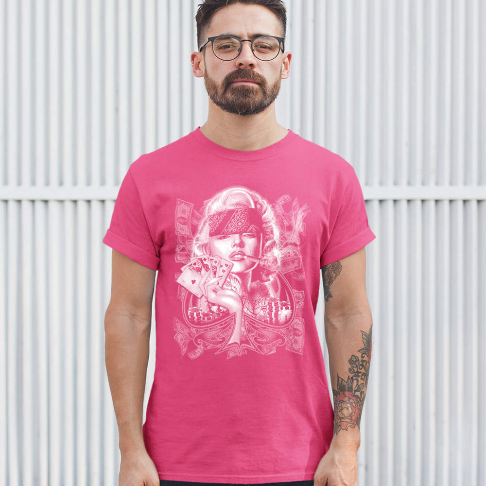 MARILYN MONROE PLAYING POKER SMOKING A JOINT t-shirt 420 marijuana men's tee hot pink