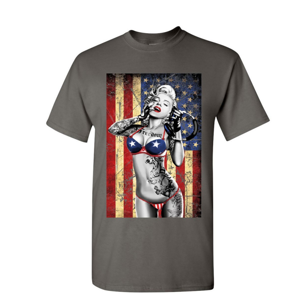 SEXY MARILYN MONROE US FLAG marilyn monroe us flag t-shirt freedom sexy girl tattoos gangsta mens tee shirt charcoal
