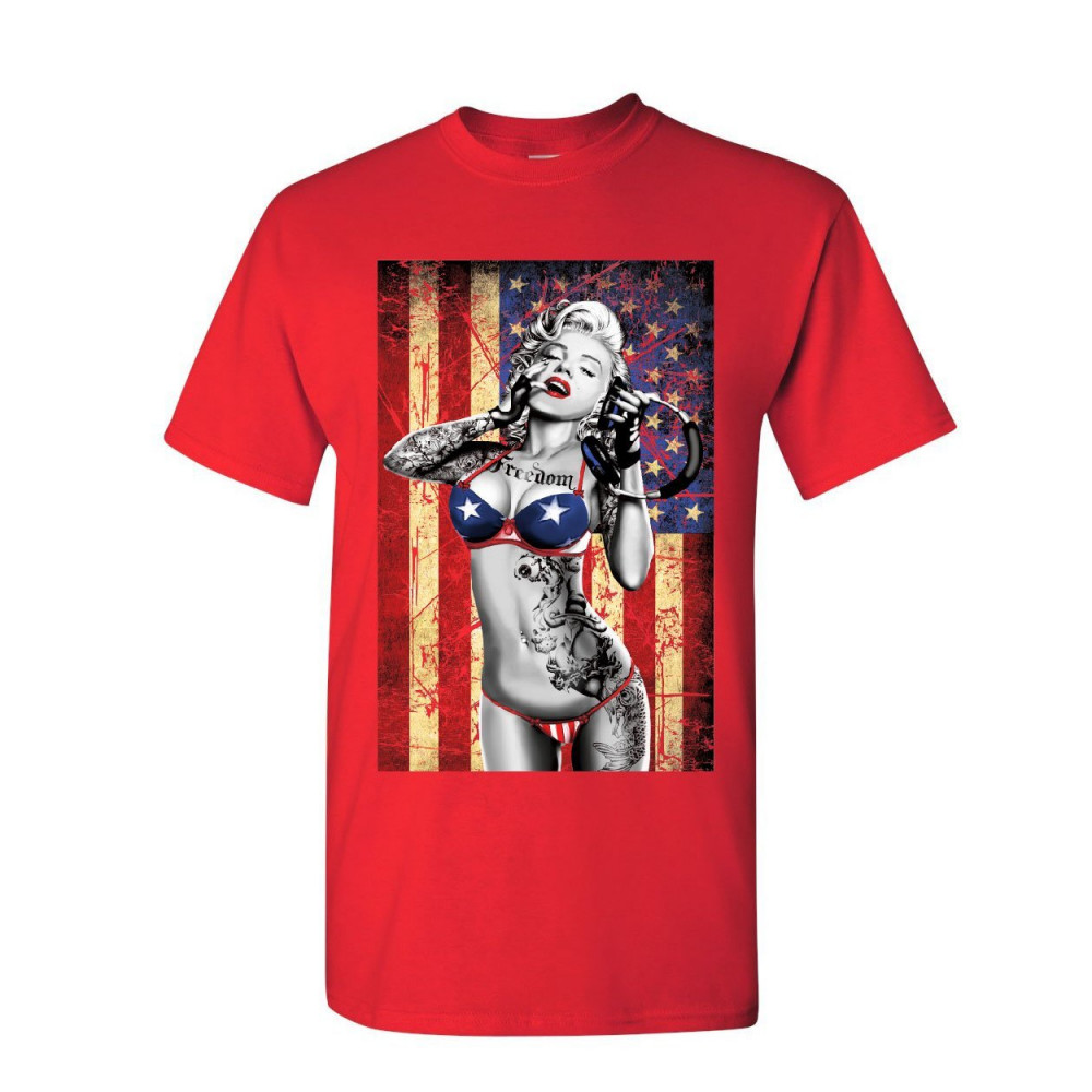 SEXY MARILYN MONROE US FLAG marilyn monroe us flag t-shirt freedom sexy girl tattoos gangsta mens tee shirt red