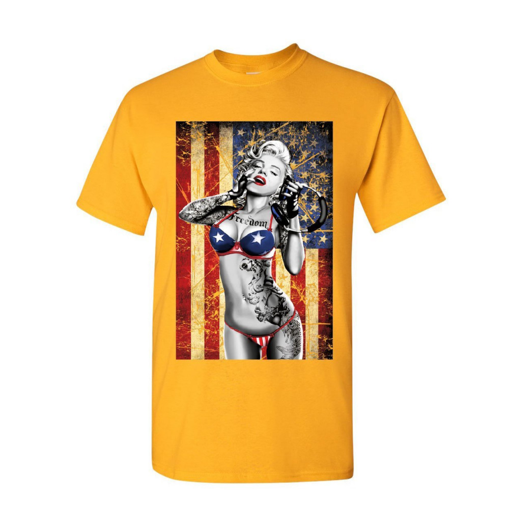 SEXY MARILYN MONROE US FLAG marilyn monroe us flag t-shirt freedom sexy girl tattoos gangsta mens tee shirt yellow