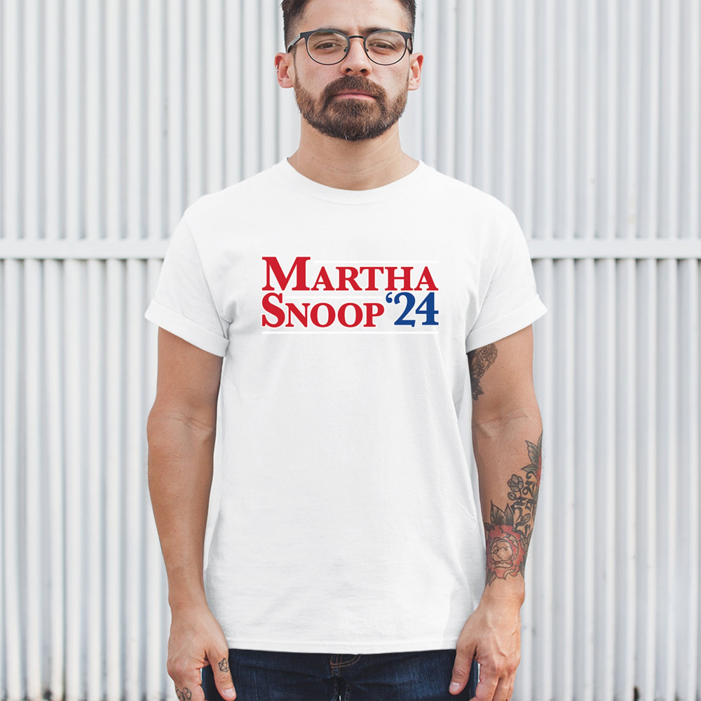 Elevate your casual wardrobe with our "Martha Snoop '24" design, a perfect mix of humor and pop culture. Ideal for fans of the iconic duo, this design merges political satire with entertainment flair. Crafted from premium materials, it ensures comfort and durability. Wear it to parties, casual outings, or just at home to express your unique style and sense of humor. This graphic is a great conversation starter and a fantastic gift for friends and family who appreciate a good laugh and love for pop culture icons.
