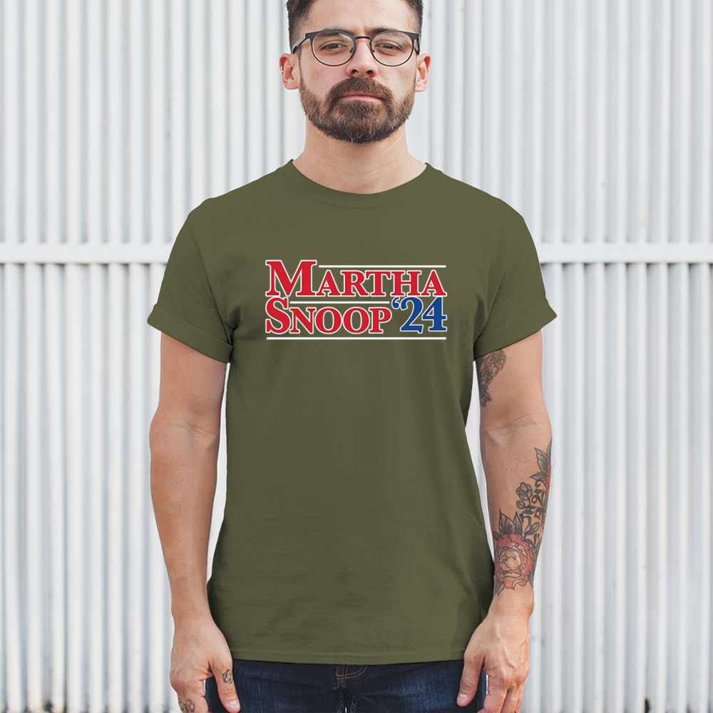 Elevate your casual wardrobe with our "Martha Snoop '24" design, a perfect mix of humor and pop culture. Ideal for fans of the iconic duo, this design merges political satire with entertainment flair. Crafted from premium materials, it ensures comfort and durability. Wear it to parties, casual outings, or just at home to express your unique style and sense of humor. This graphic is a great conversation starter and a fantastic gift for friends and family who appreciate a good laugh and love for pop culture icons.