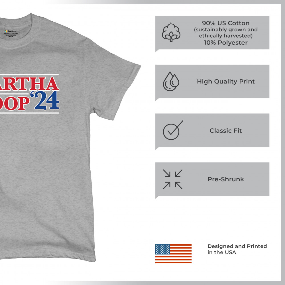 Elevate your casual wardrobe with our "Martha Snoop '24" design, a perfect mix of humor and pop culture. Ideal for fans of the iconic duo, this design merges political satire with entertainment flair. Crafted from premium materials, it ensures comfort and durability. Wear it to parties, casual outings, or just at home to express your unique style and sense of humor. This graphic is a great conversation starter and a fantastic gift for friends and family who appreciate a good laugh and love for pop culture icons.