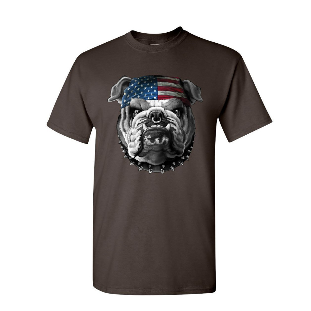 MEAN AMERICAN BULLDOG t-shirt stars and stripes bandana badass mens tee shirt brown