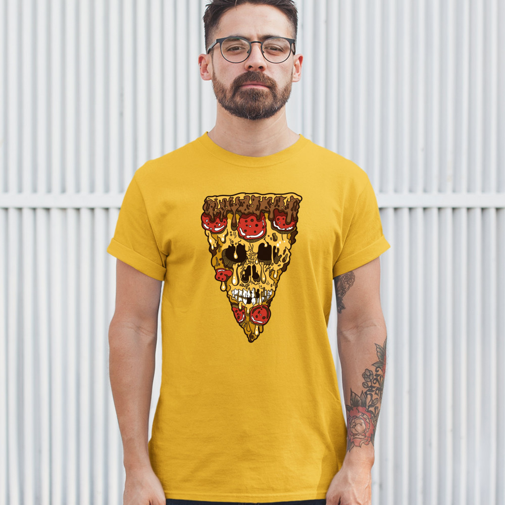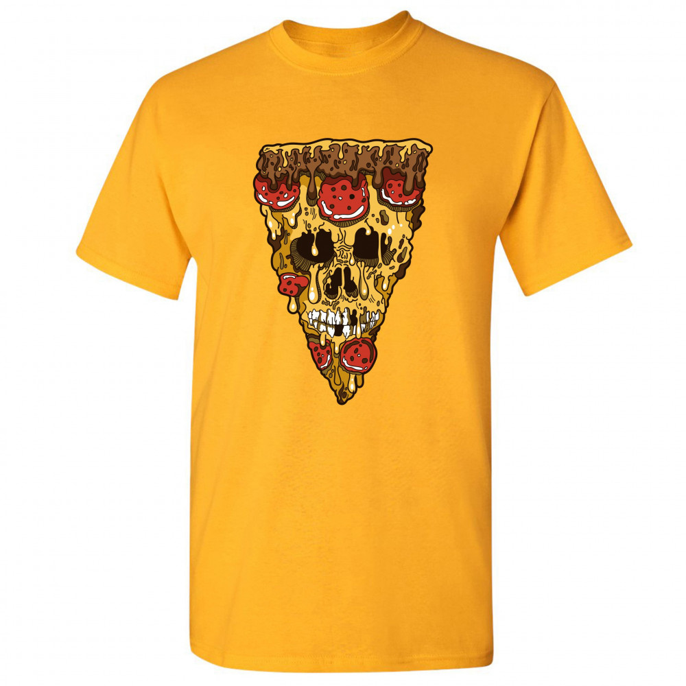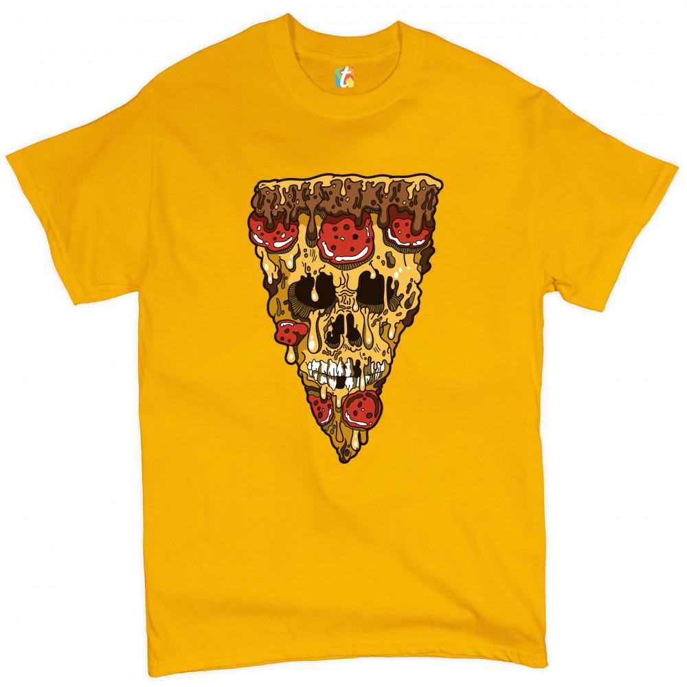MELTING PIZZA ZOMBIE FACE t-shirt horror halloween scary undead men's tee yellow