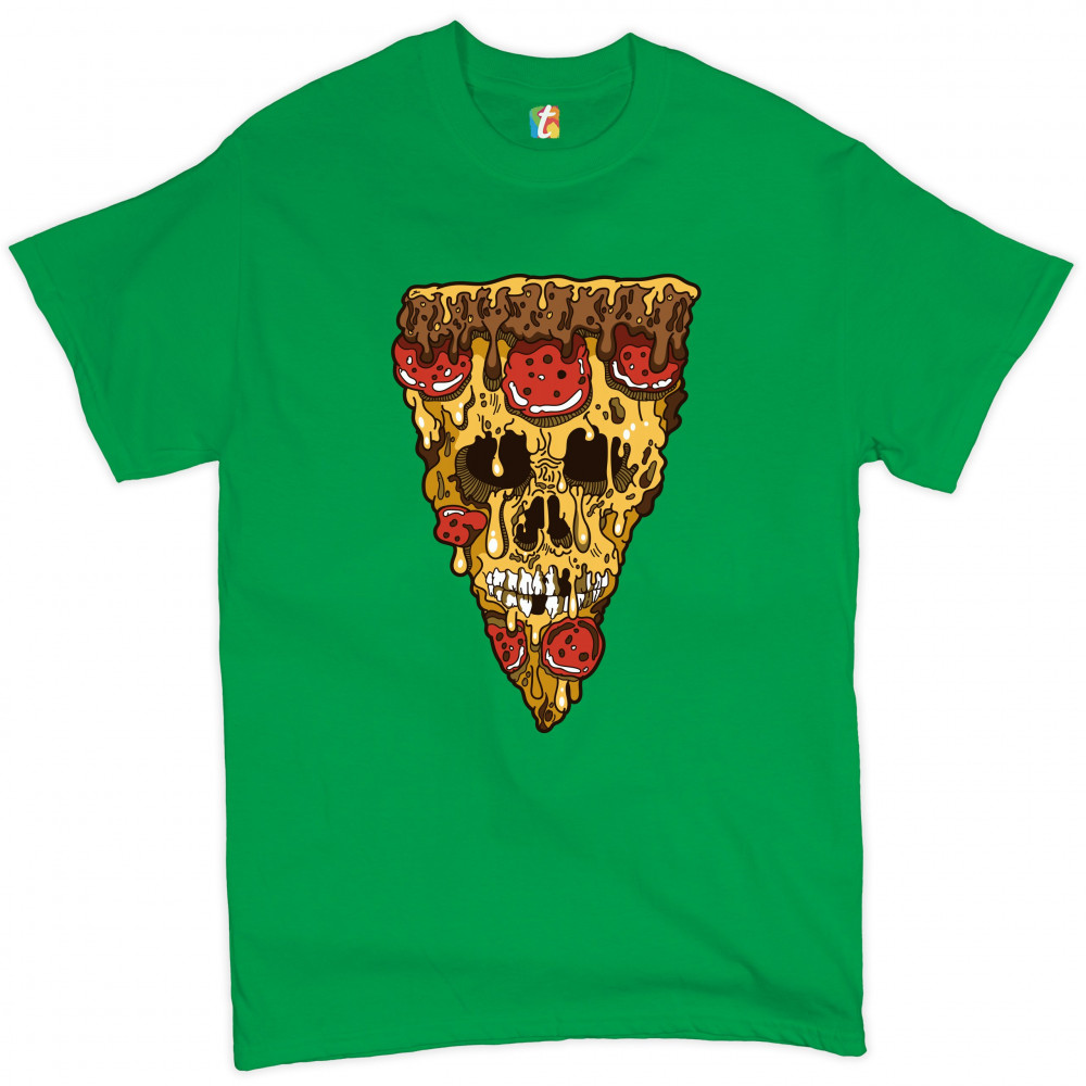 MELTING PIZZA ZOMBIE FACE t-shirt horror halloween scary undead men's tee green