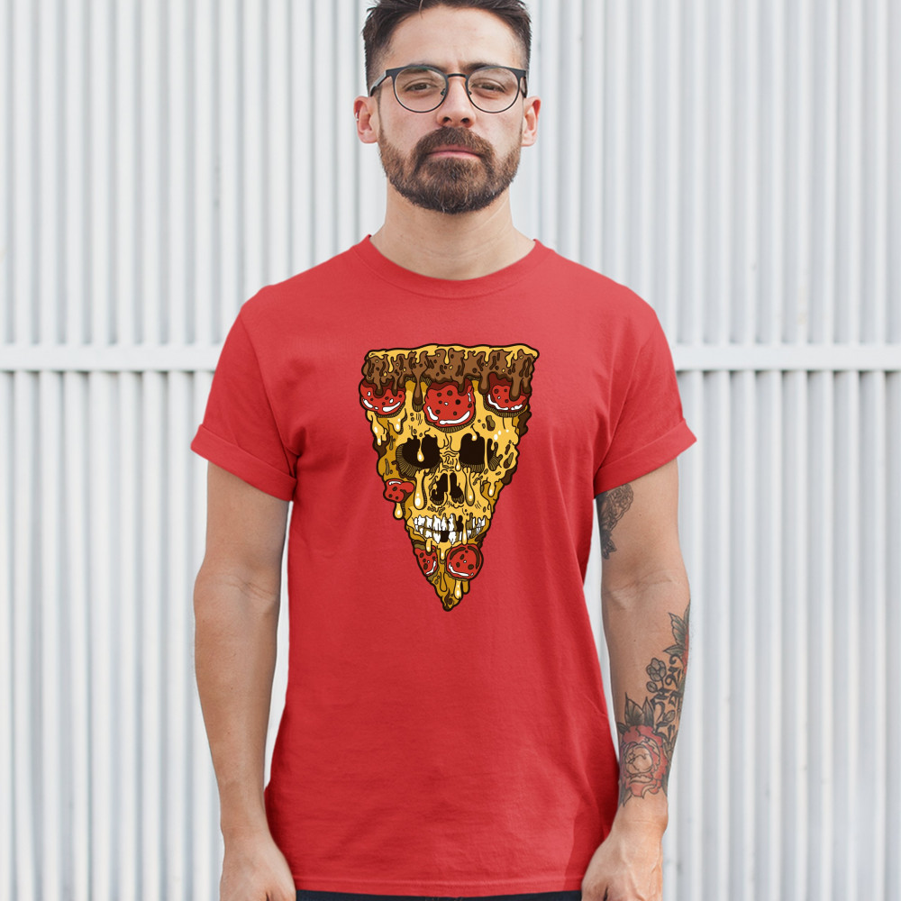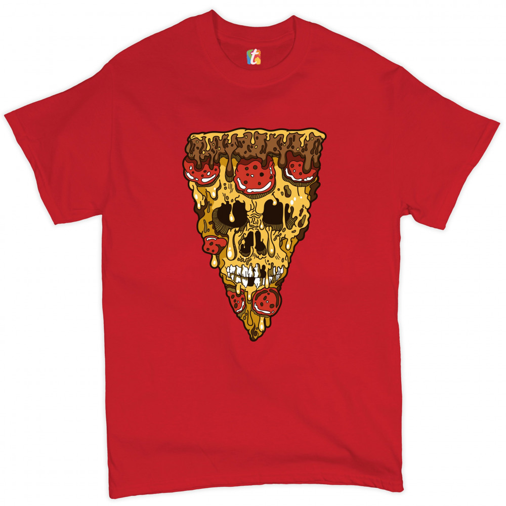 MELTING PIZZA ZOMBIE FACE t-shirt horror halloween scary undead men's tee red