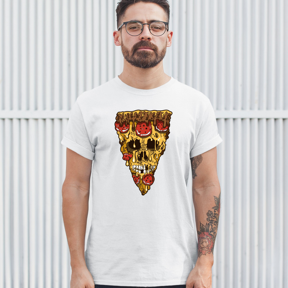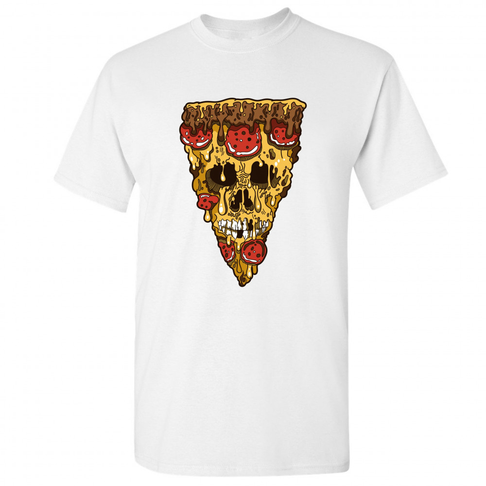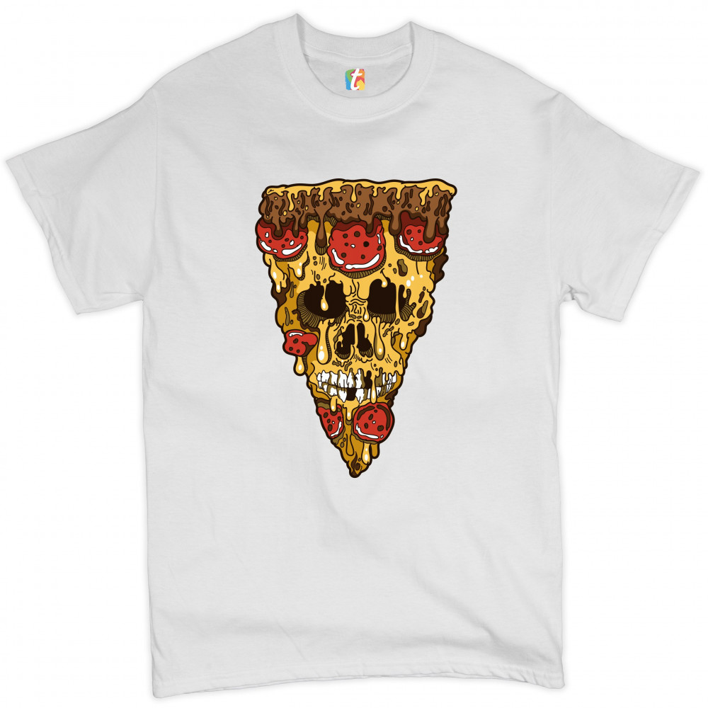 MELTING PIZZA ZOMBIE FACE t-shirt horror halloween scary undead men's tee white