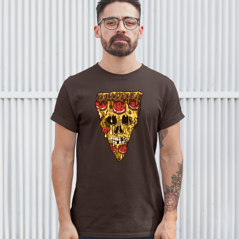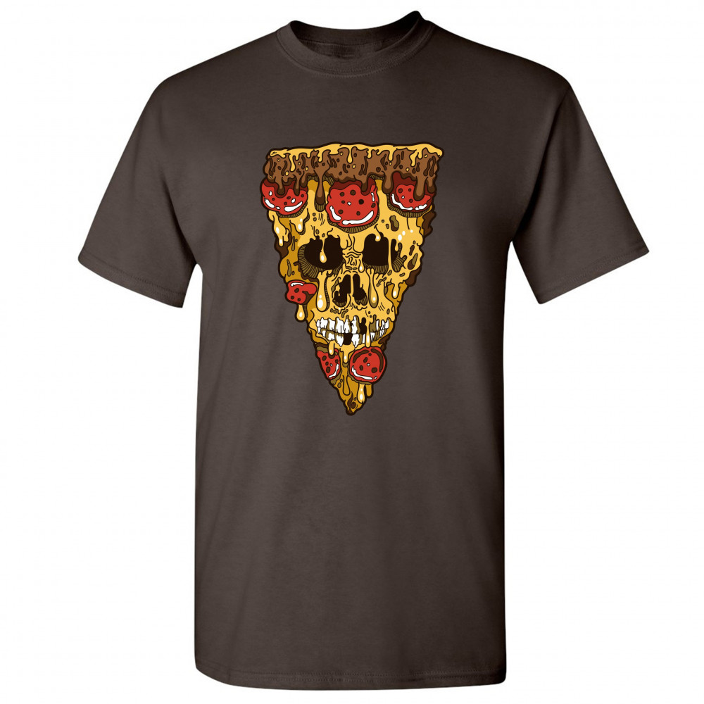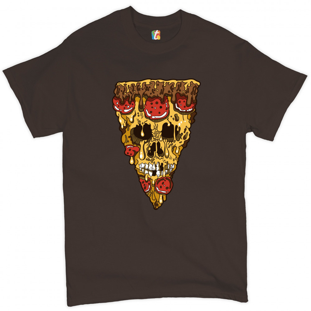 MELTING PIZZA ZOMBIE FACE t-shirt horror halloween scary undead men's tee brown