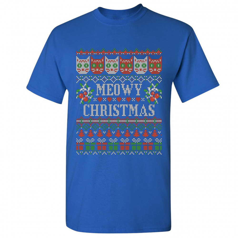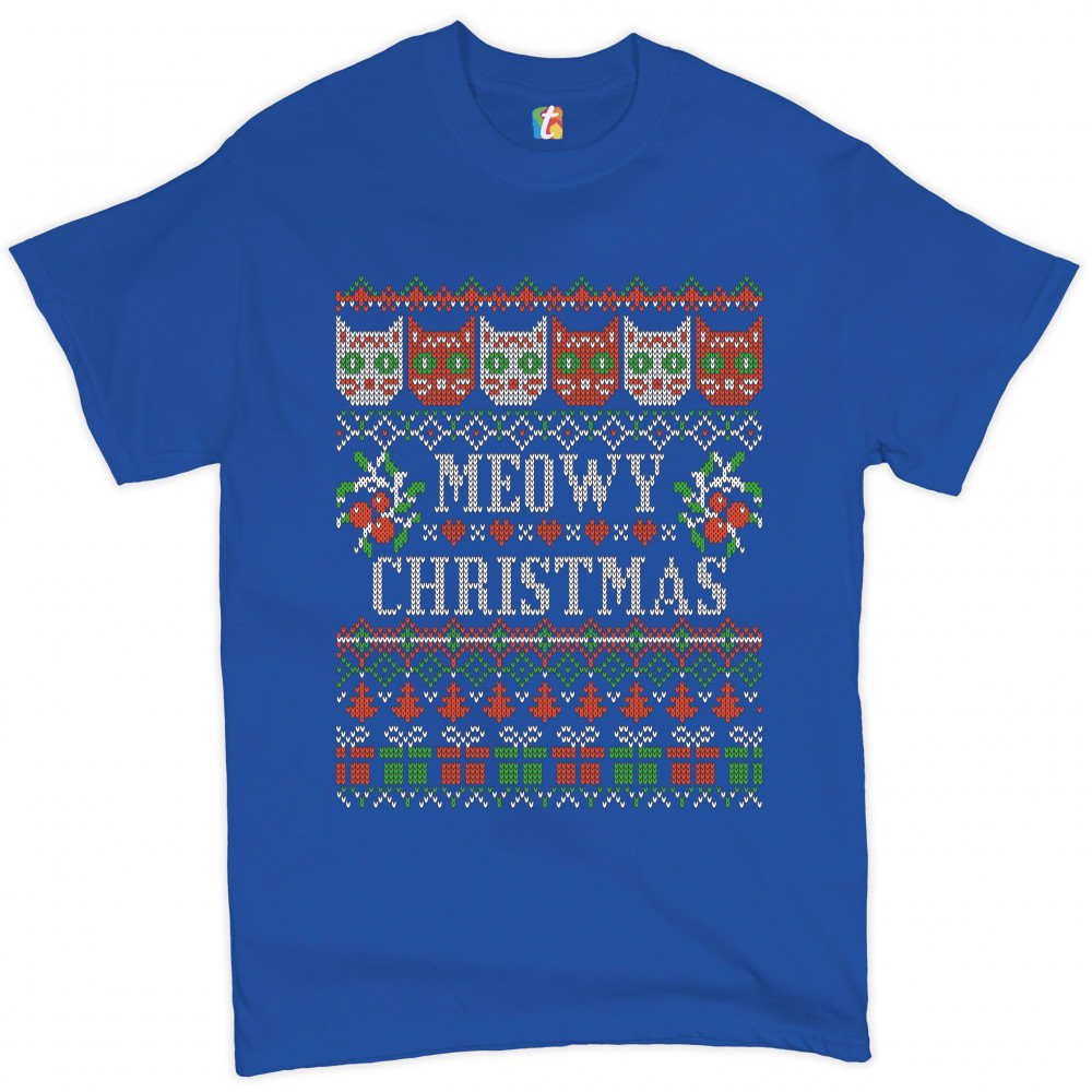 MEOWY CHRISTMAS t-shirt ugly sweater cat lover funny xmas men's tee royal blue