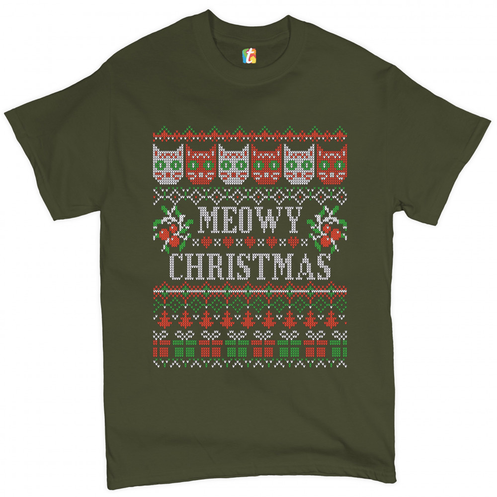 MEOWY CHRISTMAS t-shirt ugly sweater cat lover funny xmas men's tee military green