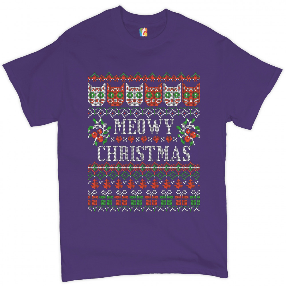 MEOWY CHRISTMAS t-shirt ugly sweater cat lover funny xmas men's tee purple